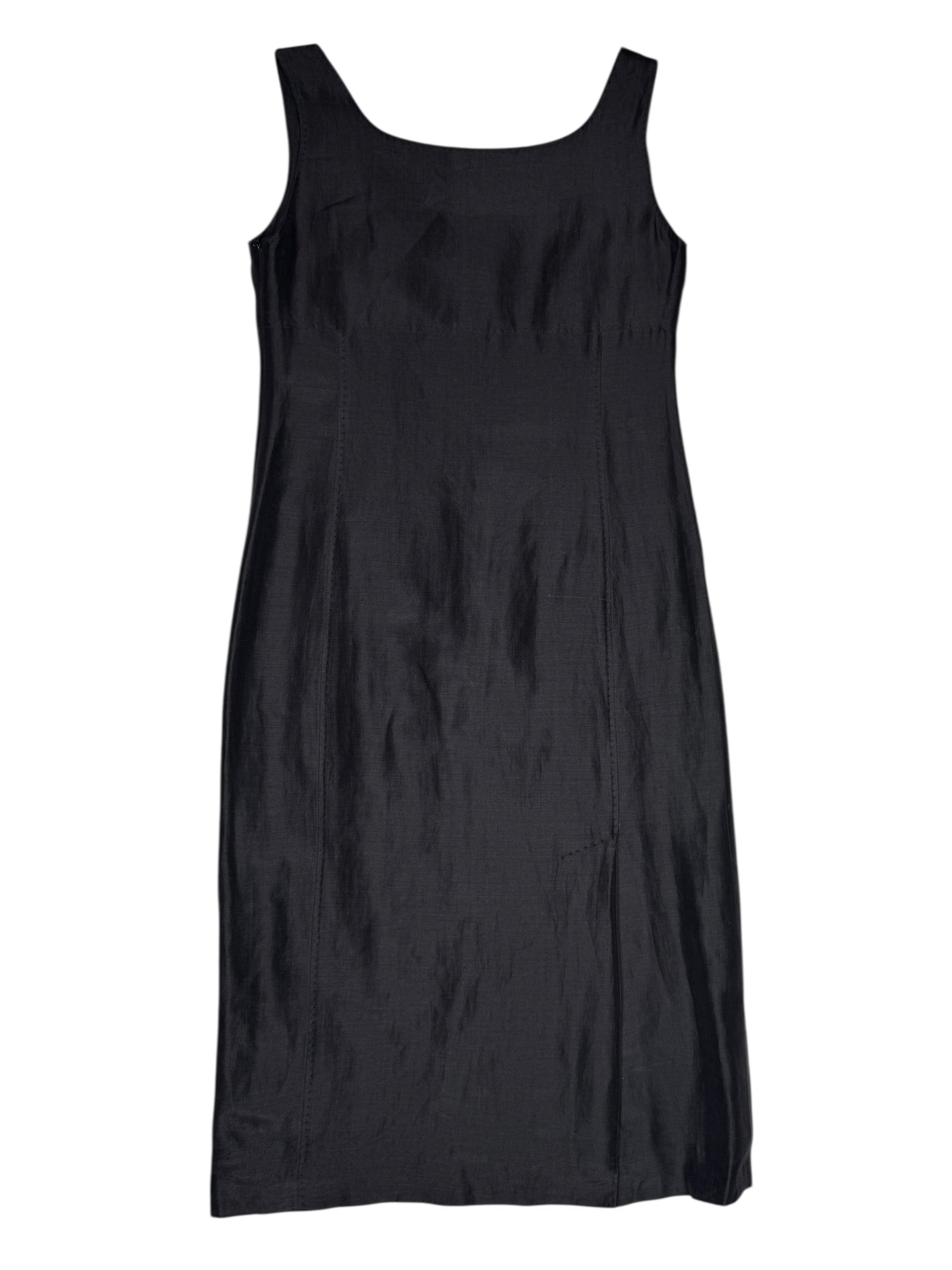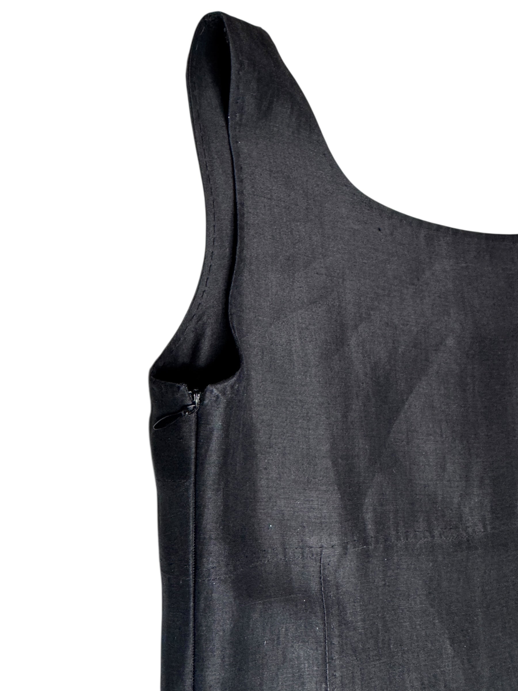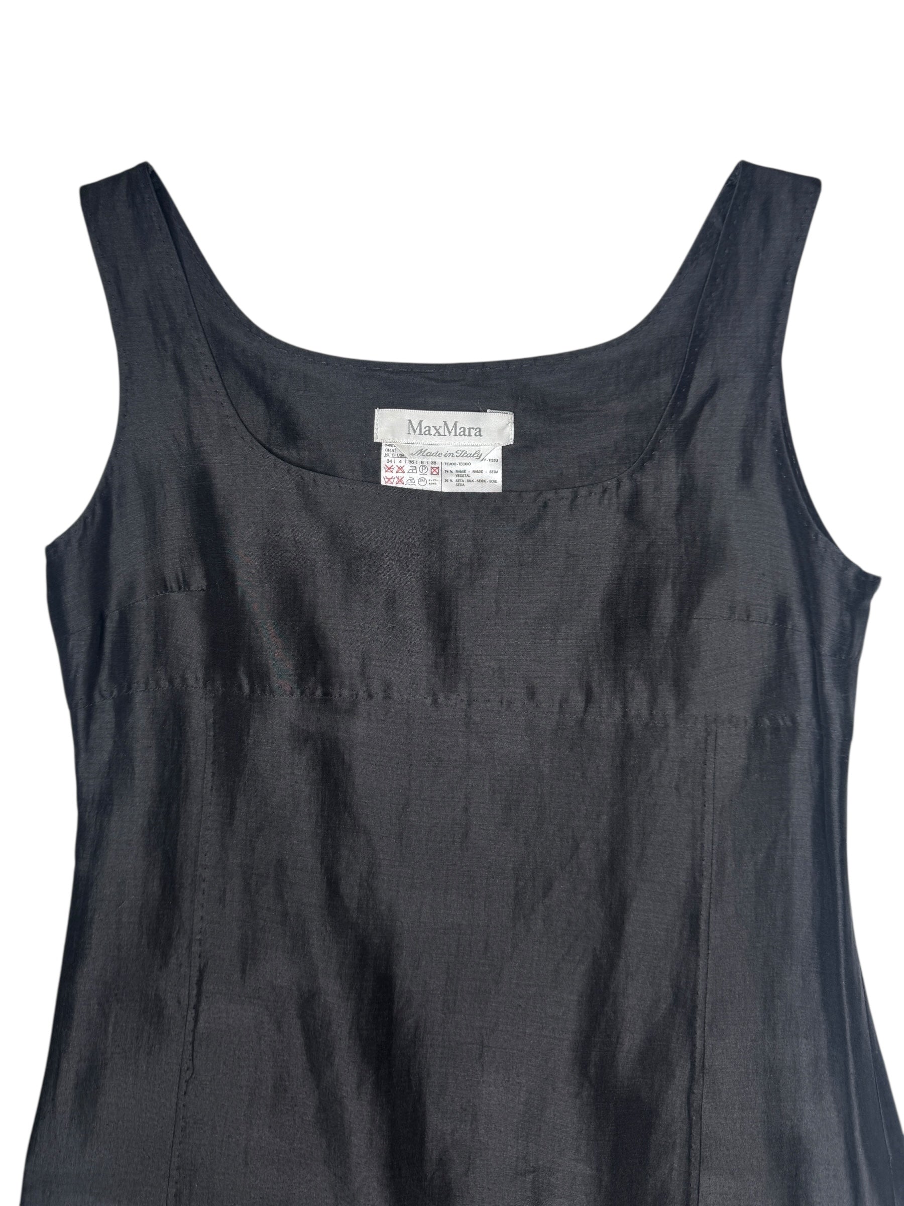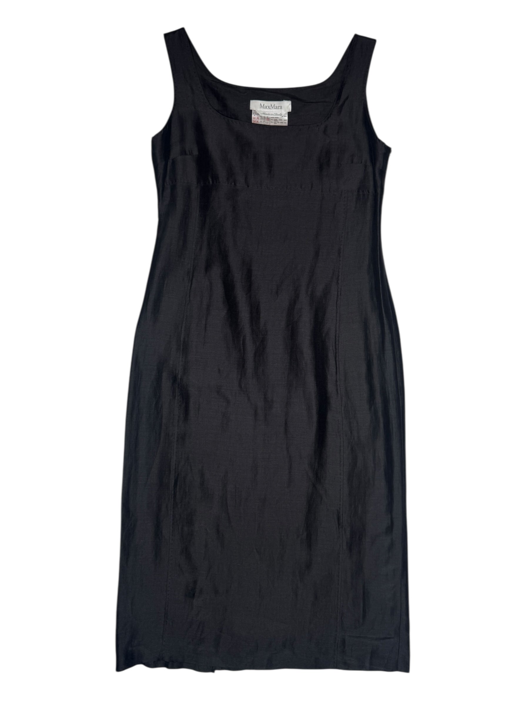 Vintage 90s Max Mara Silk Blend Basic Black Formal Sleeveless Midi Dress | Size M