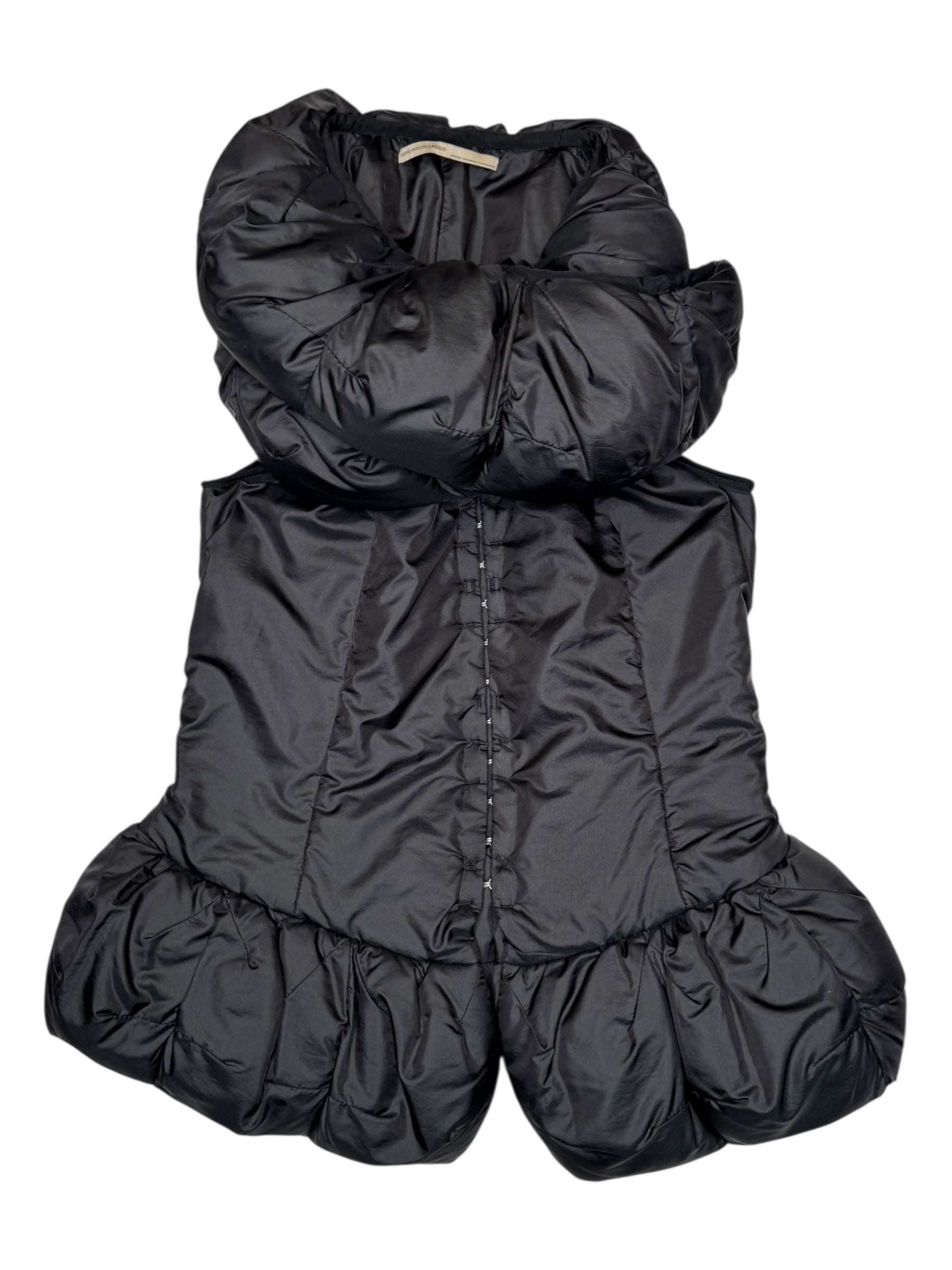 Vintage 2000s Marithé + François Girbaud Avant Garde Black Bubble Peplum Puffer Vest With Wool Padding | Size S