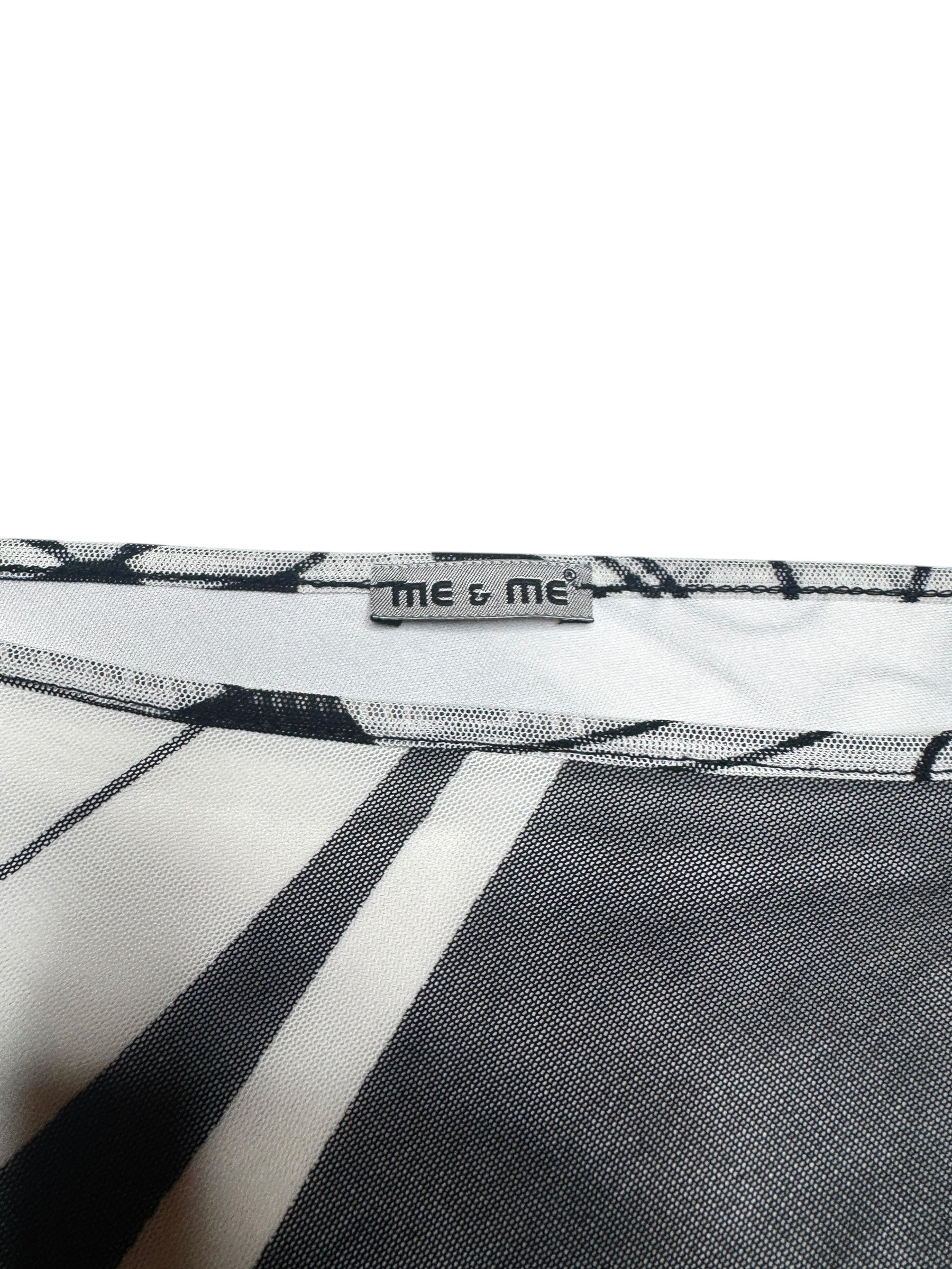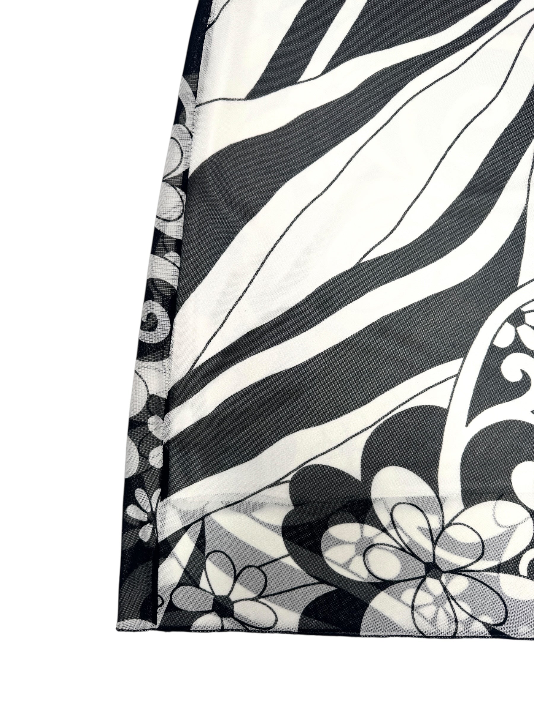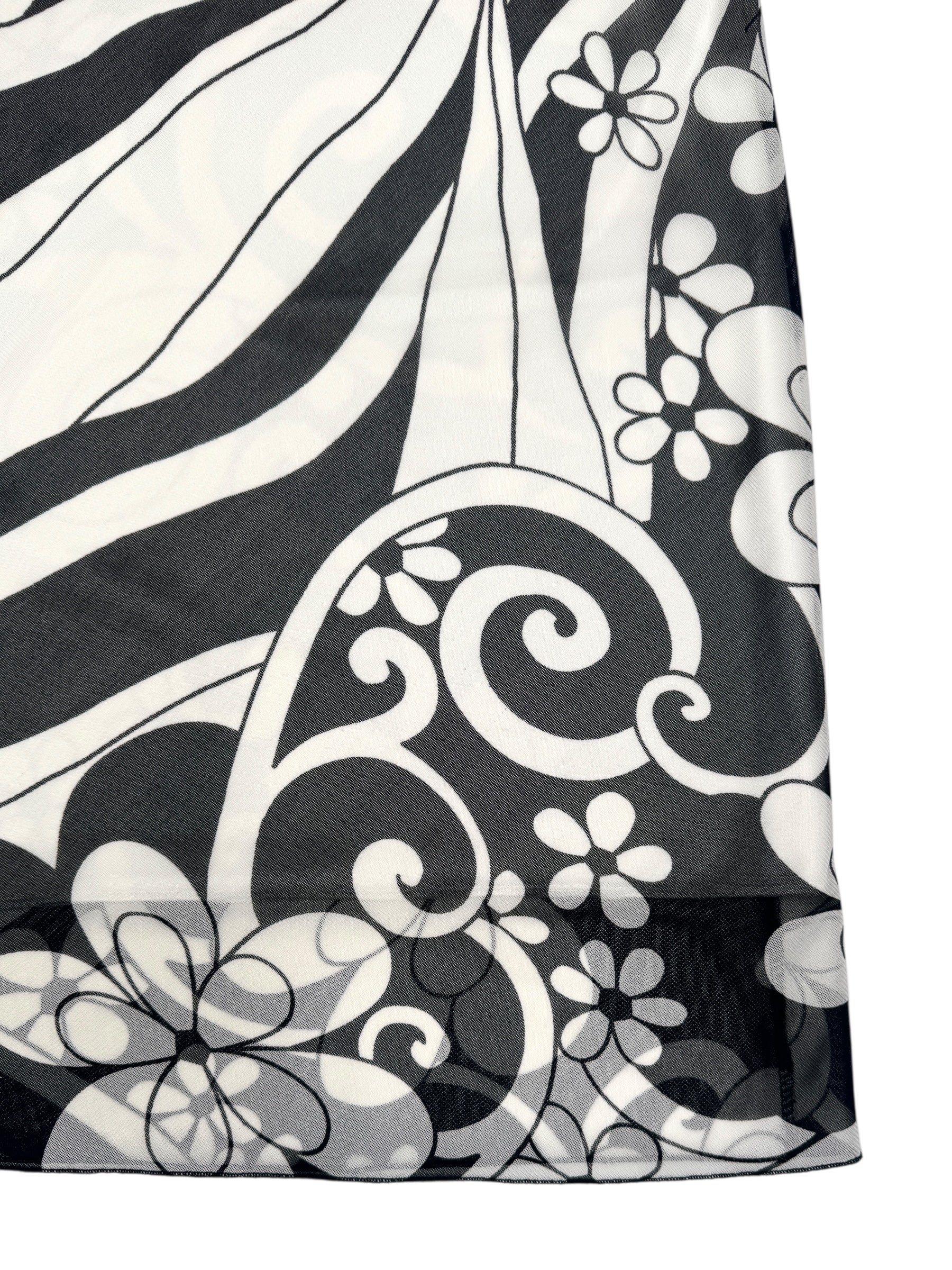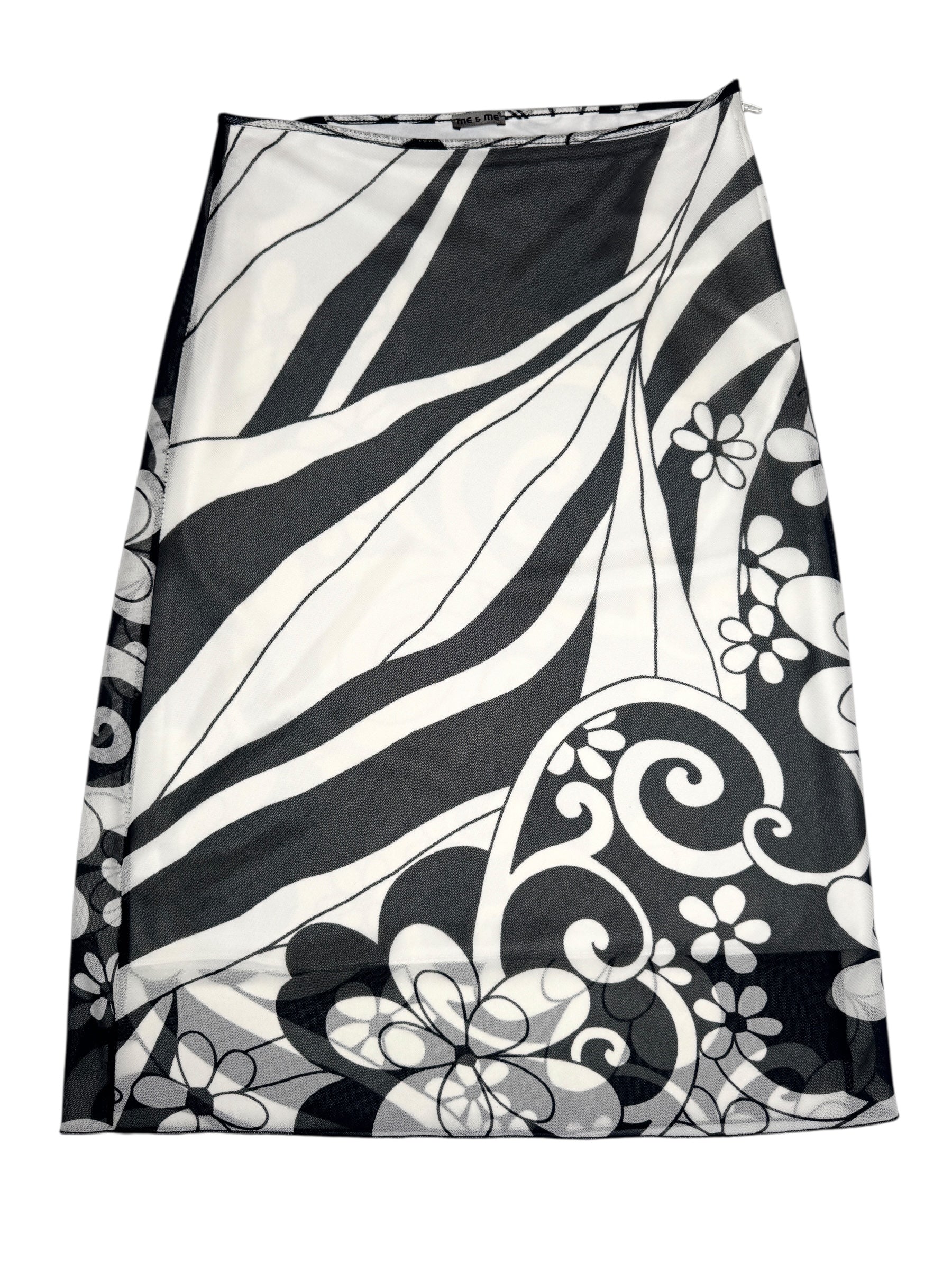 Vintage 2000s Black & White Abstract Floral Patterned Mesh Midi Skirt | Size S
