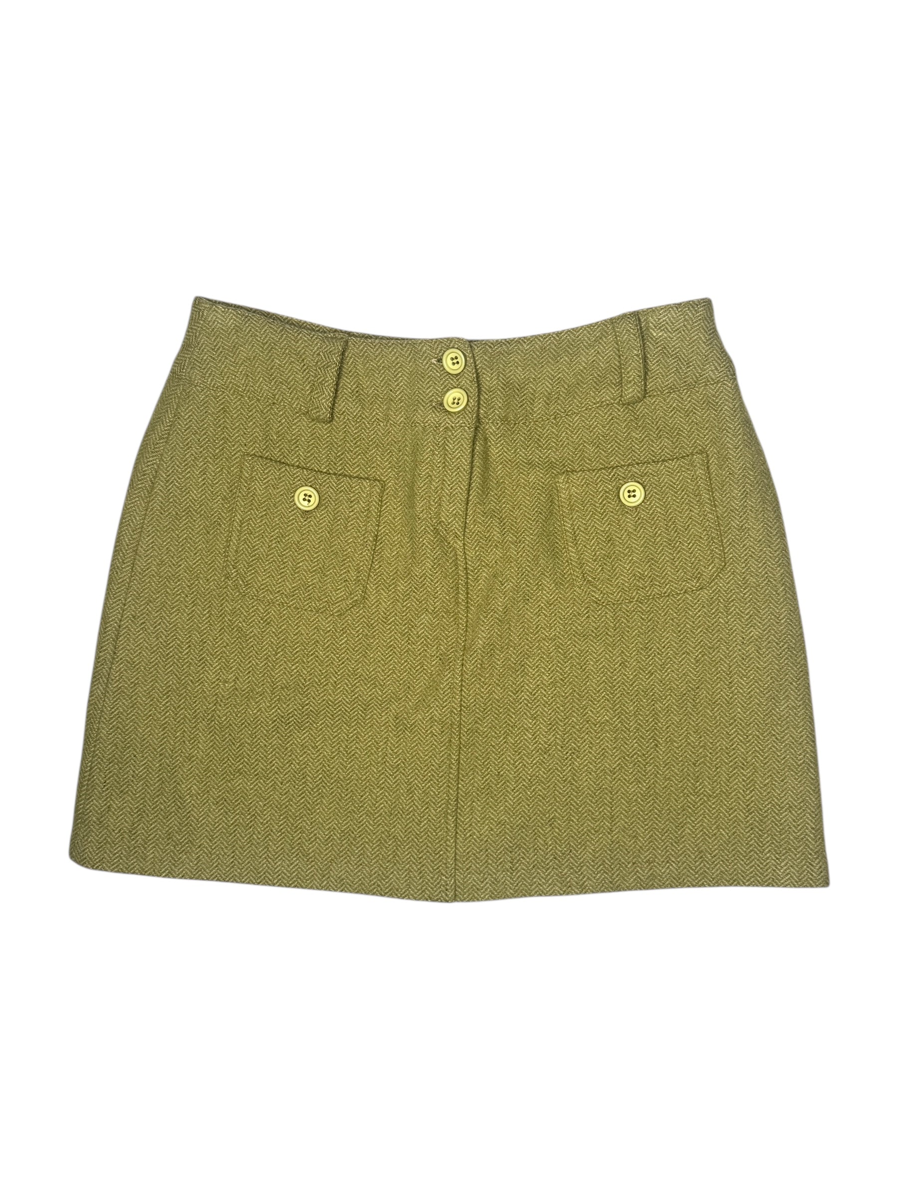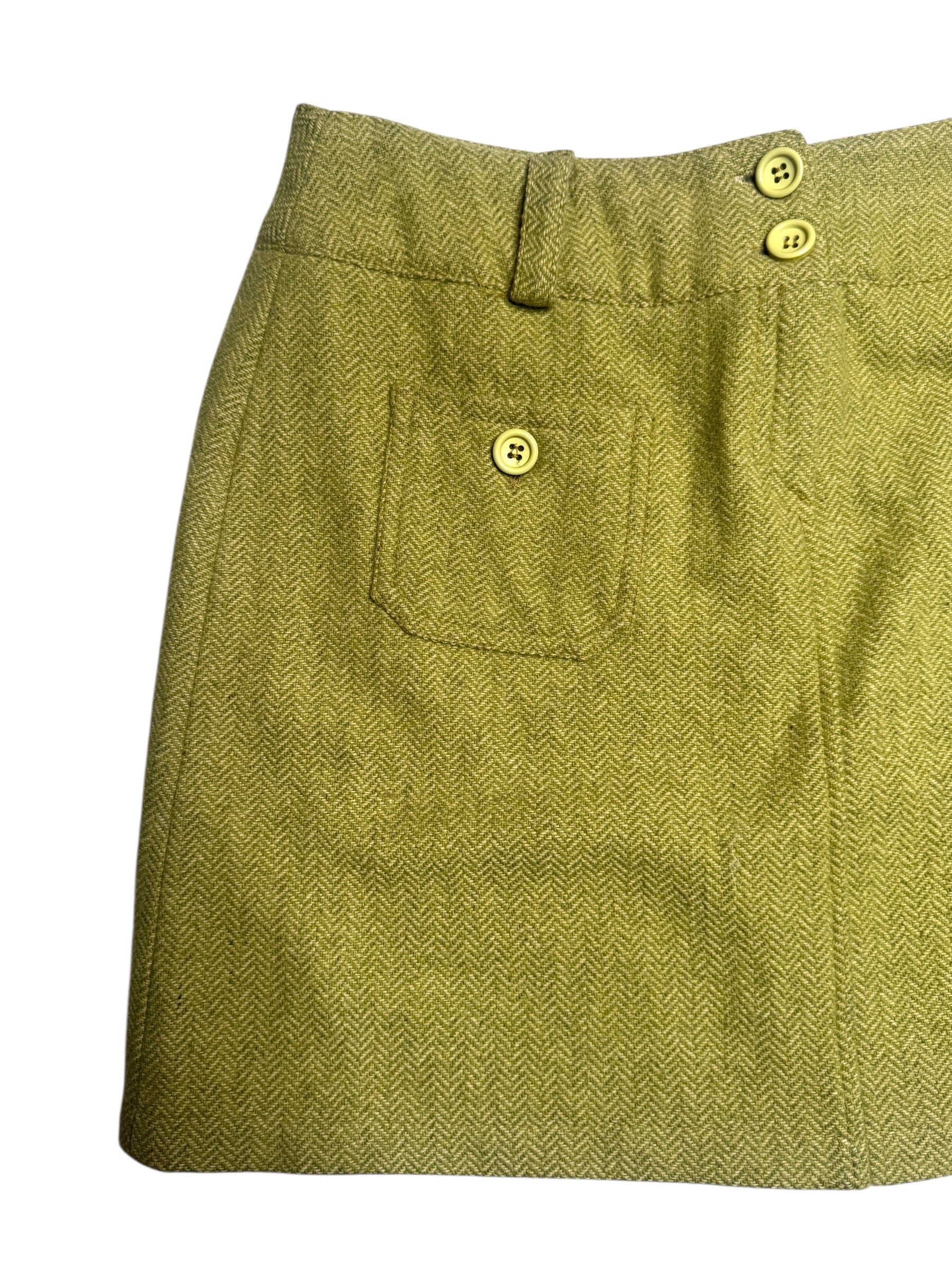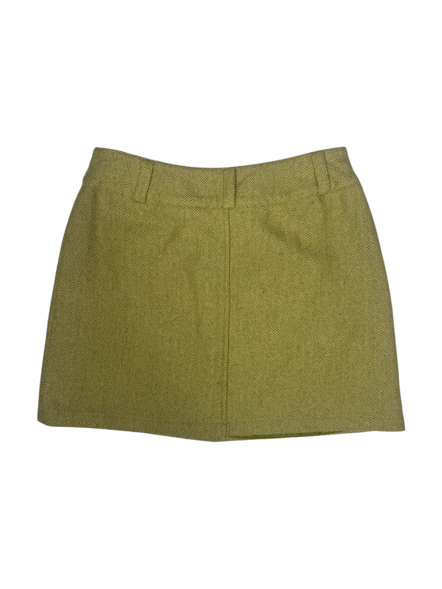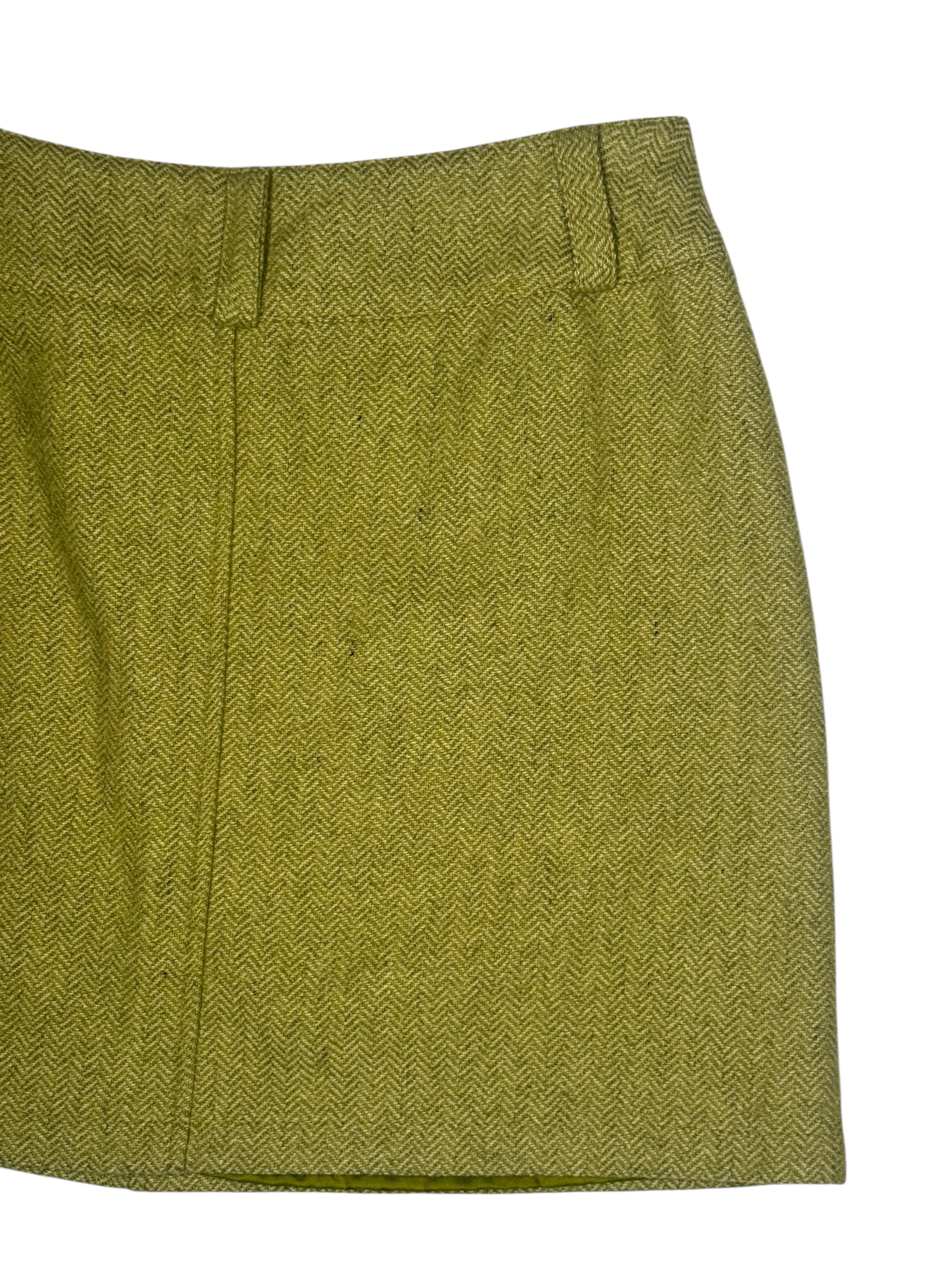 Vintage 90s Lime Green Mid Rise Chevron Patterned Woven Mini Skirt | Size S