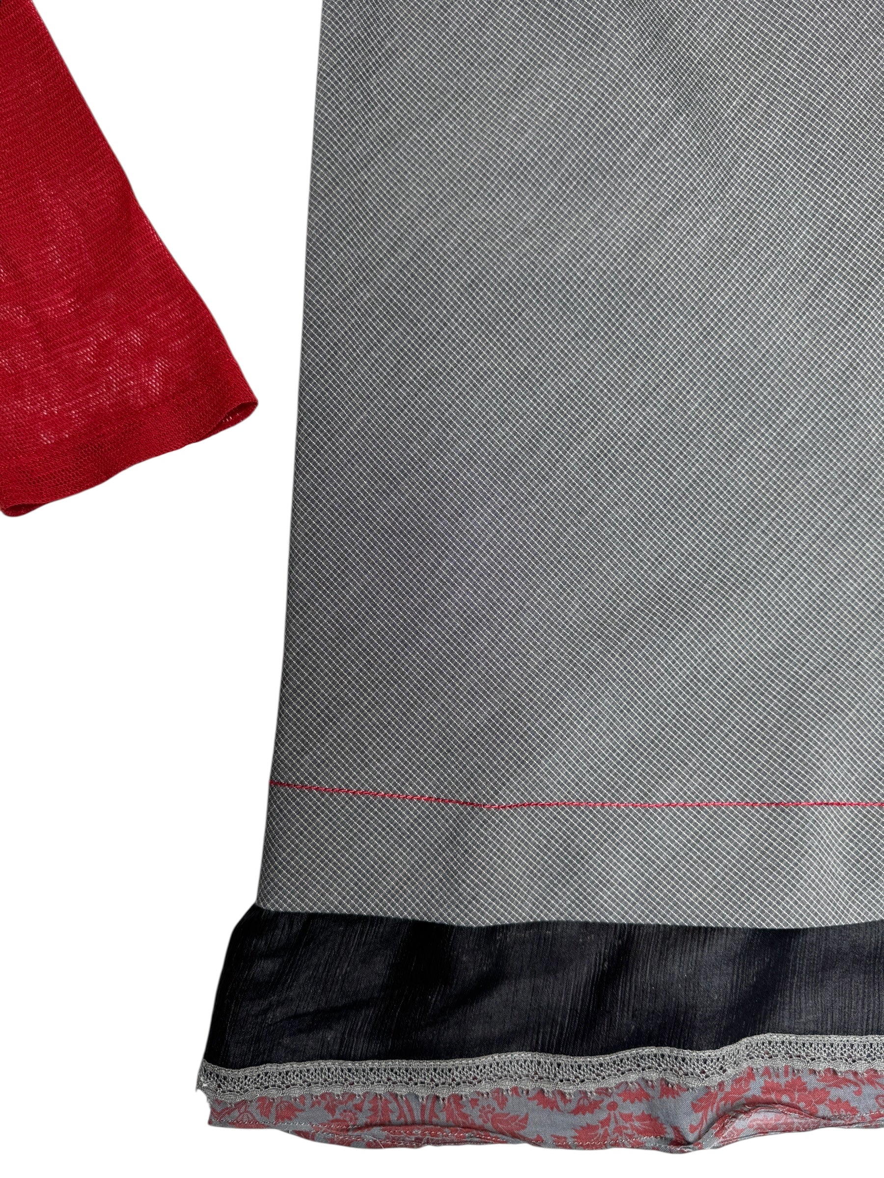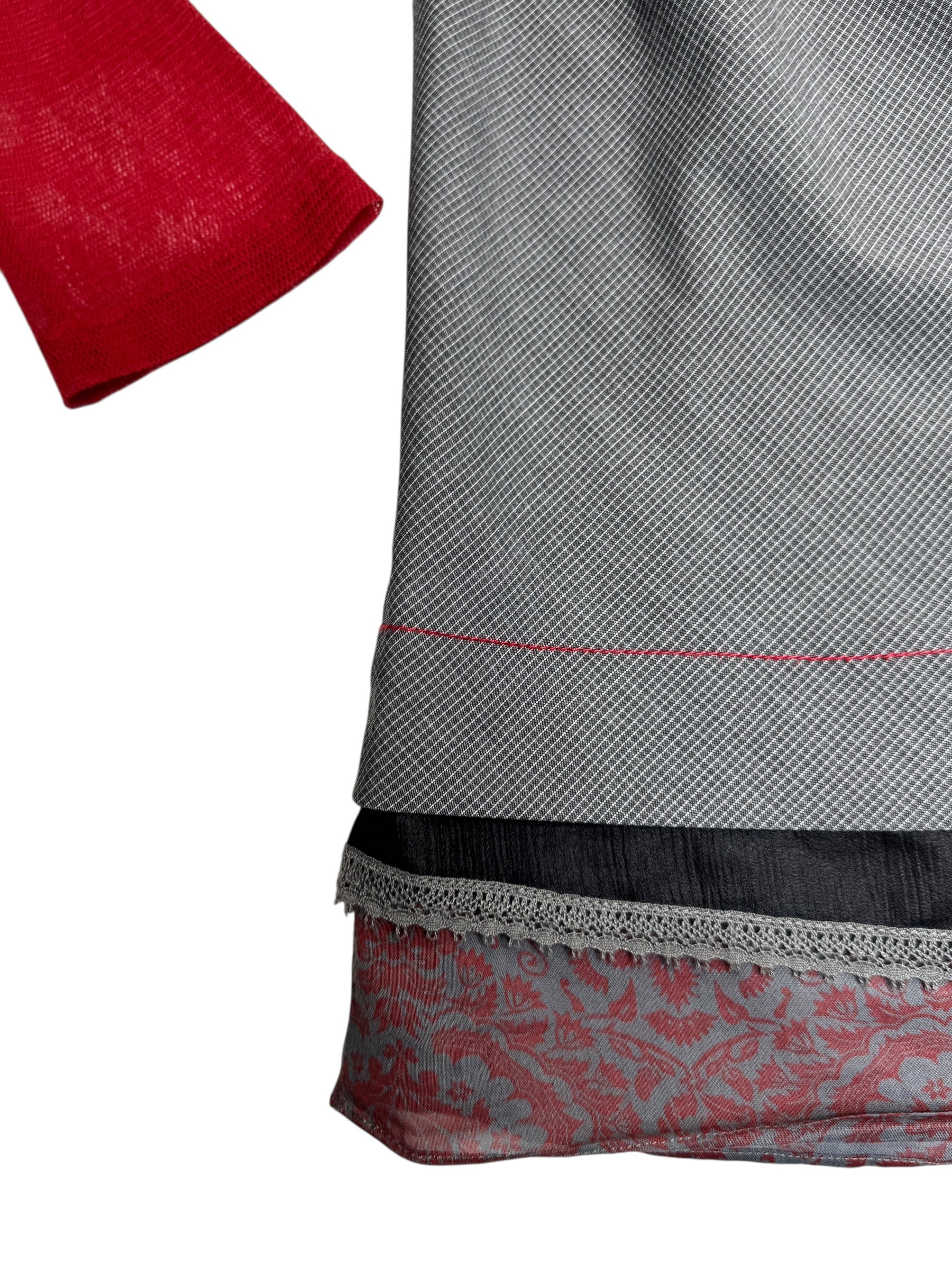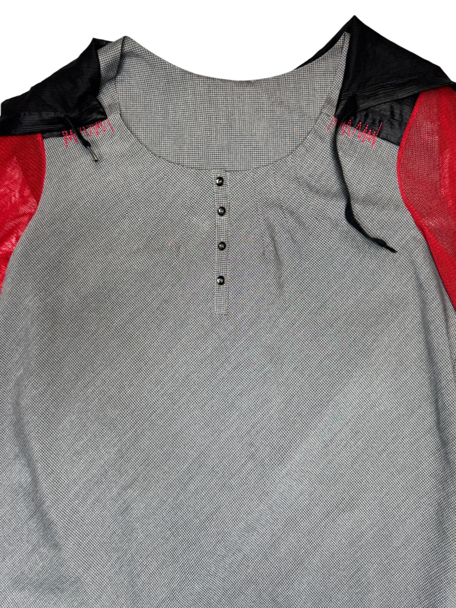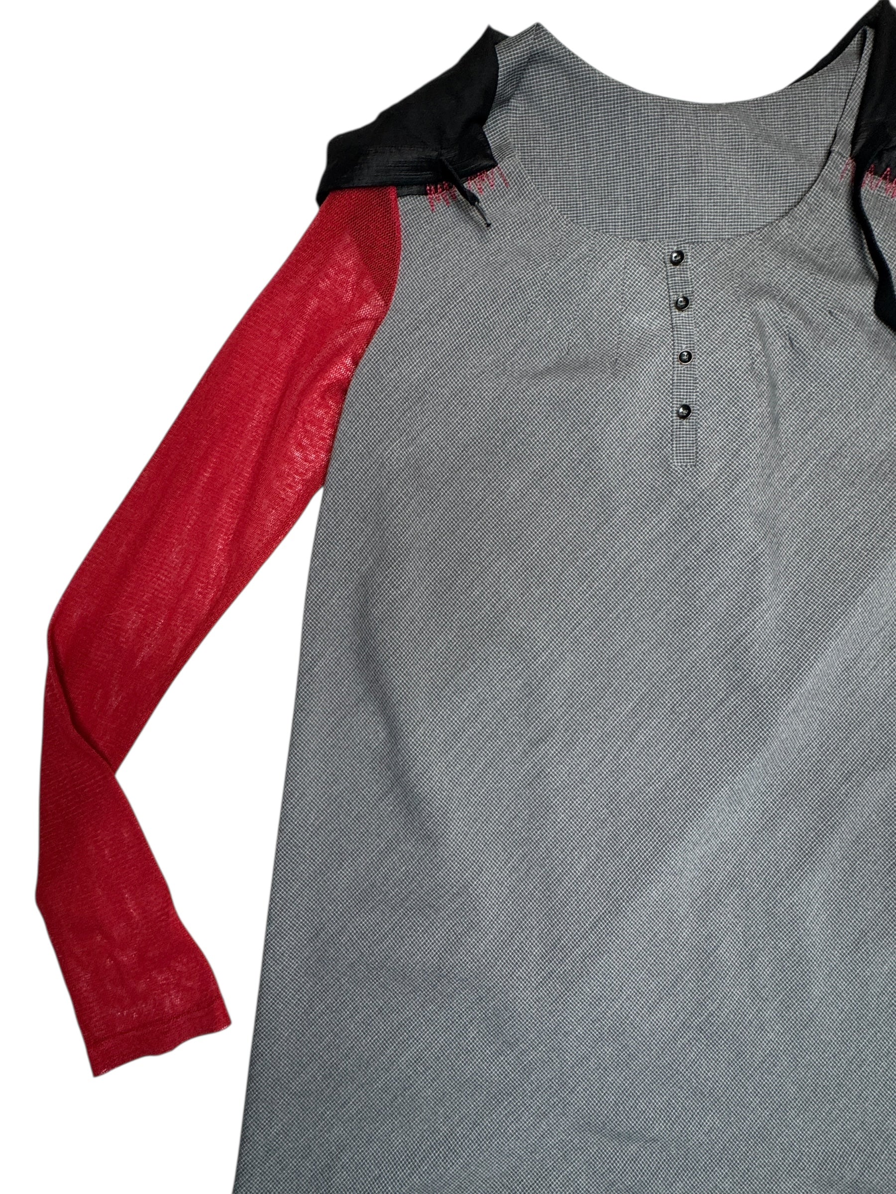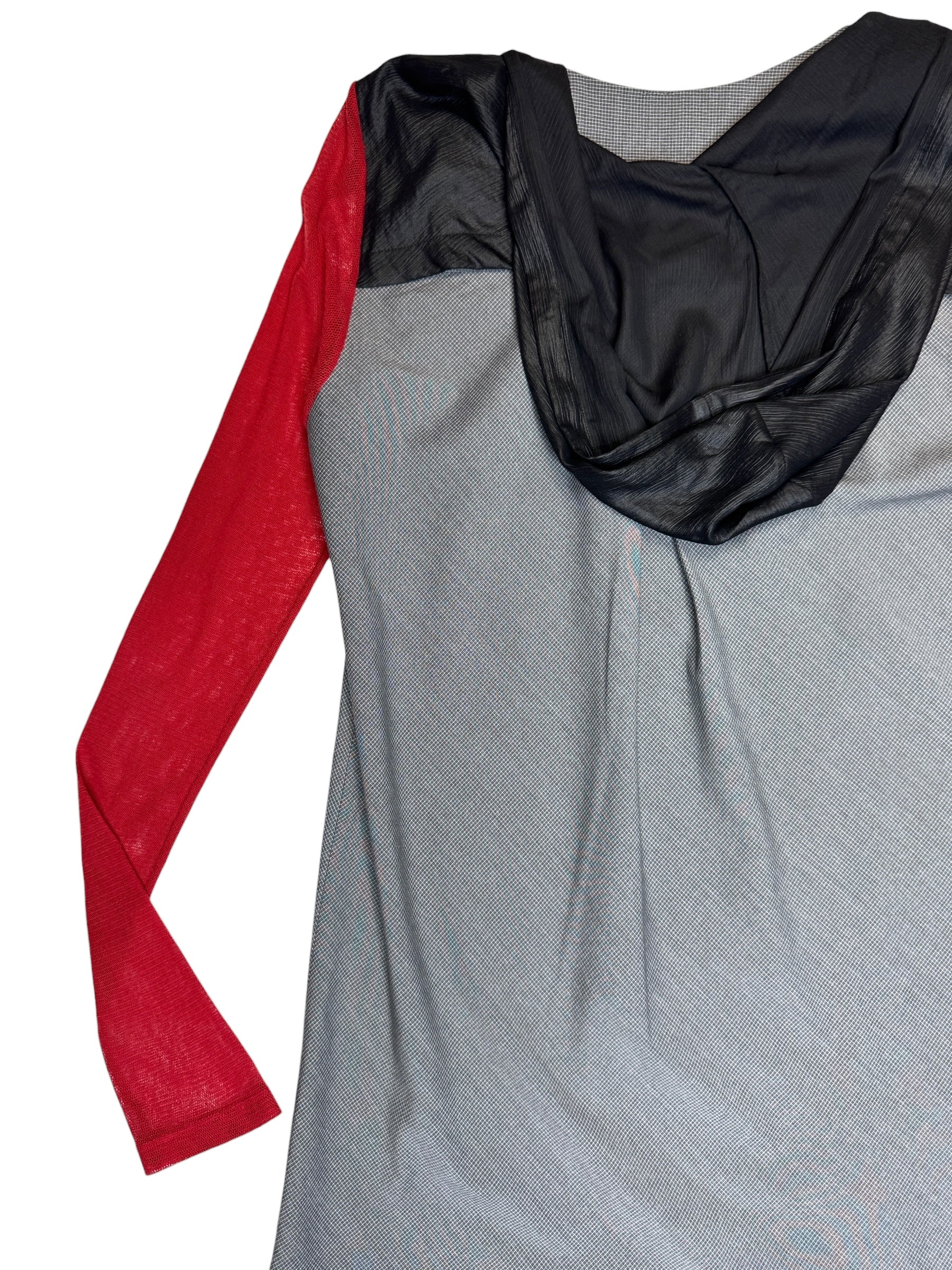 Vintage 2000s Cop Copine Long Sleeve Grey & Red Hooded Shift Mini Dress | Size L