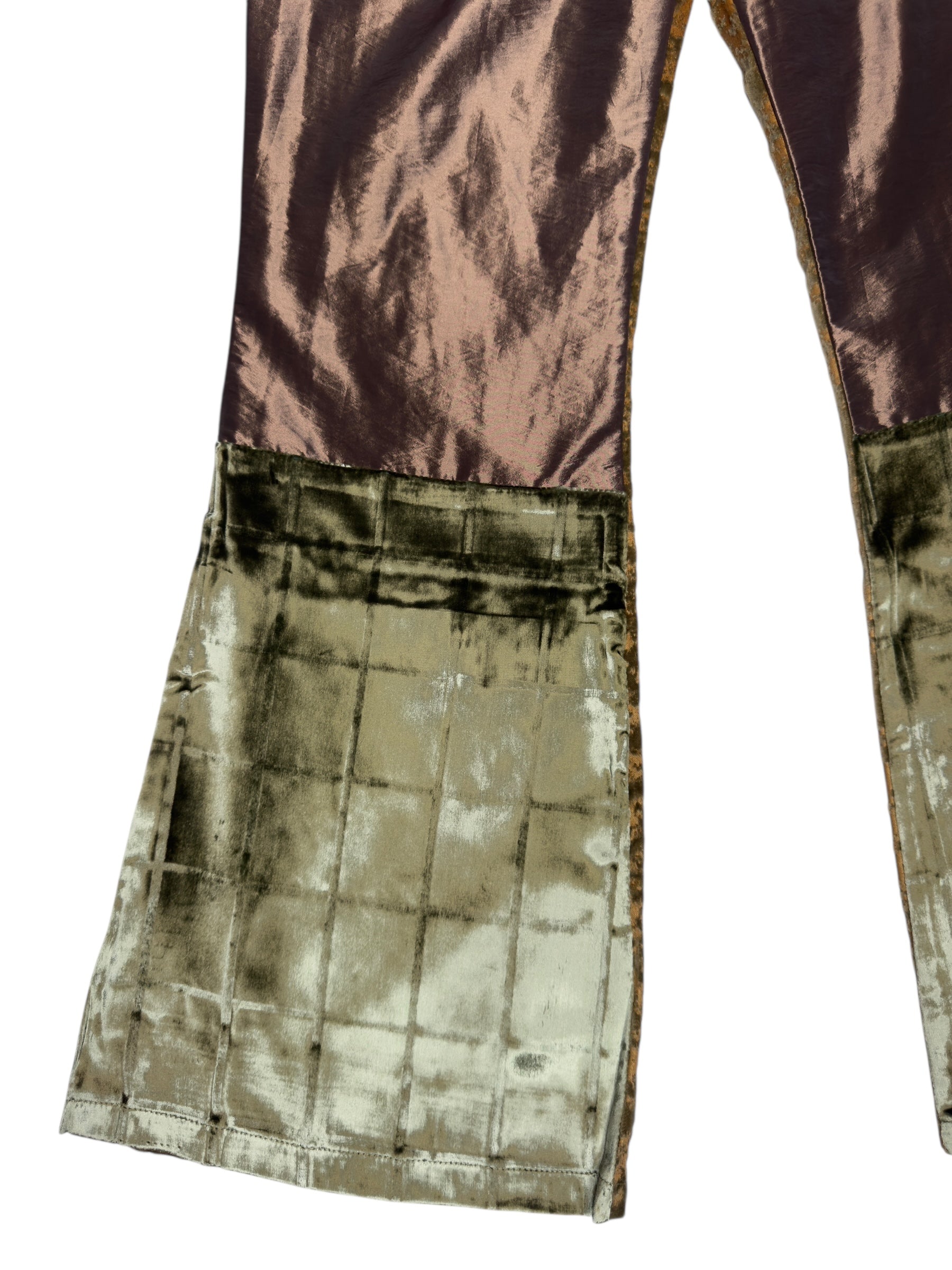 Vintage 2000s Custo Barcelona Deadstock Patchwork Bootcut Trousers With Velvet Burnout Detail | Size M