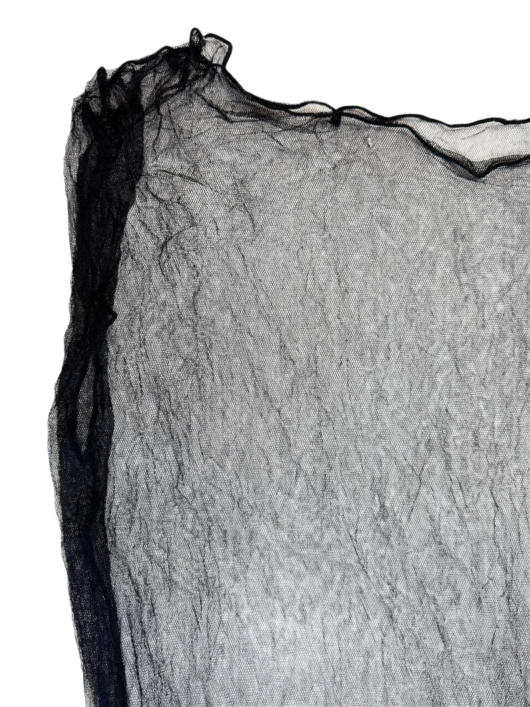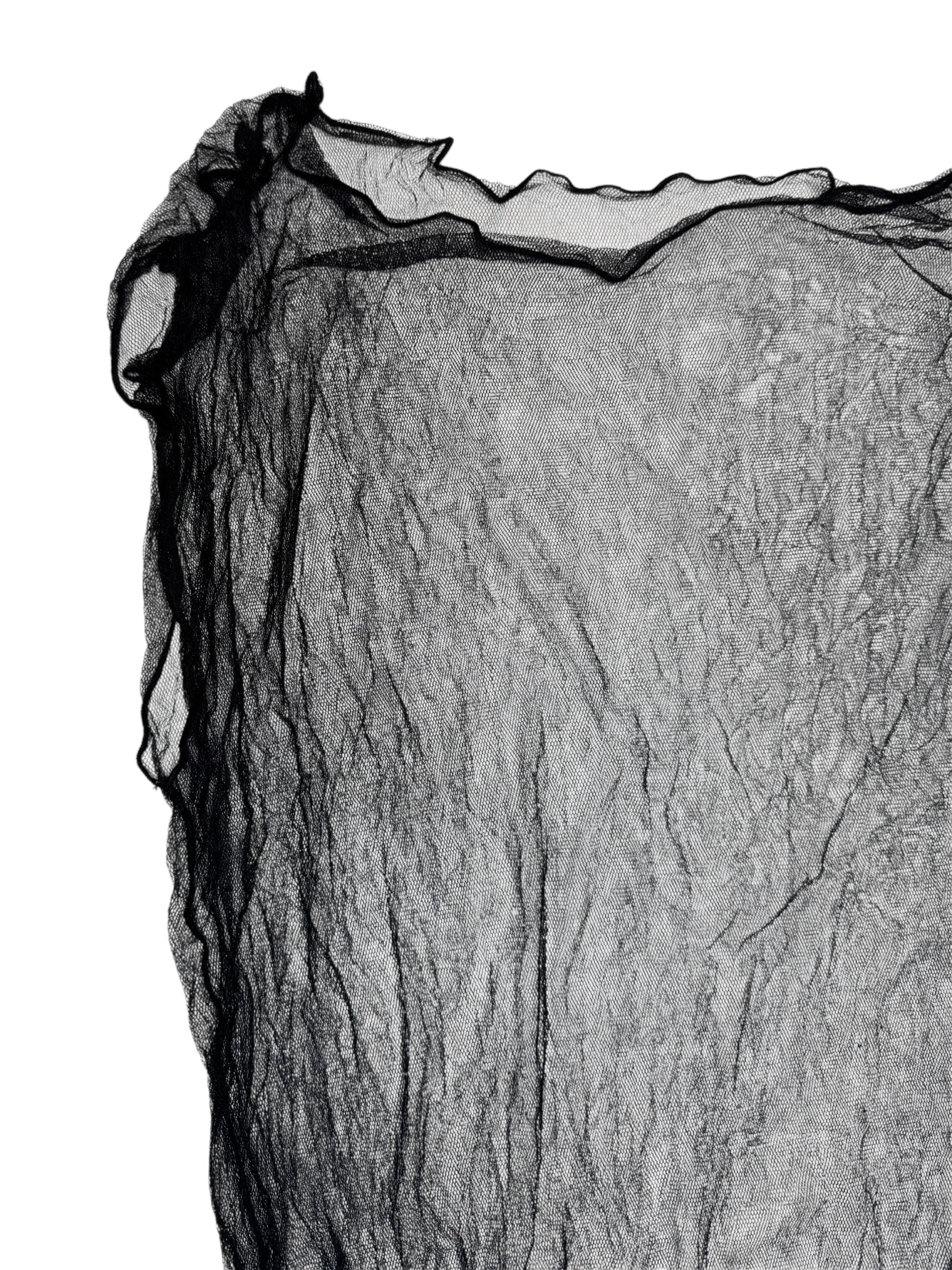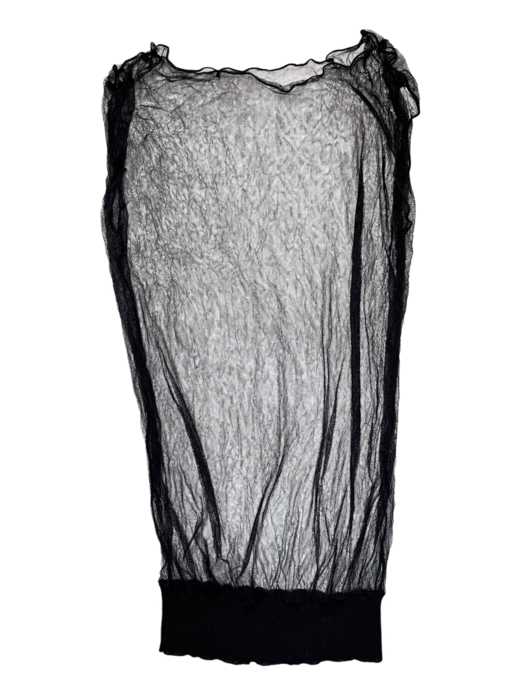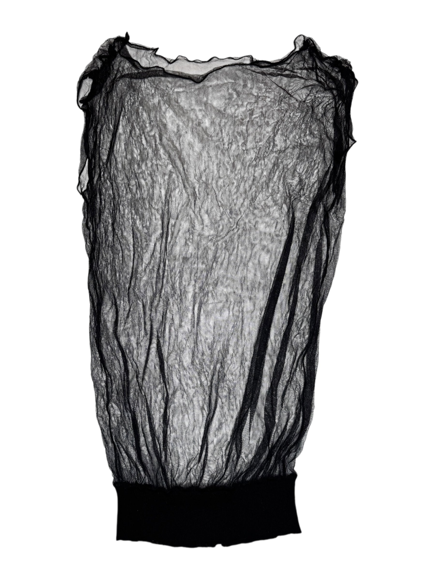 Vintage 2000s Krizia Deadstock Black Silk Mesh Long Sleeveless Top with Elasticated Waist | Size M