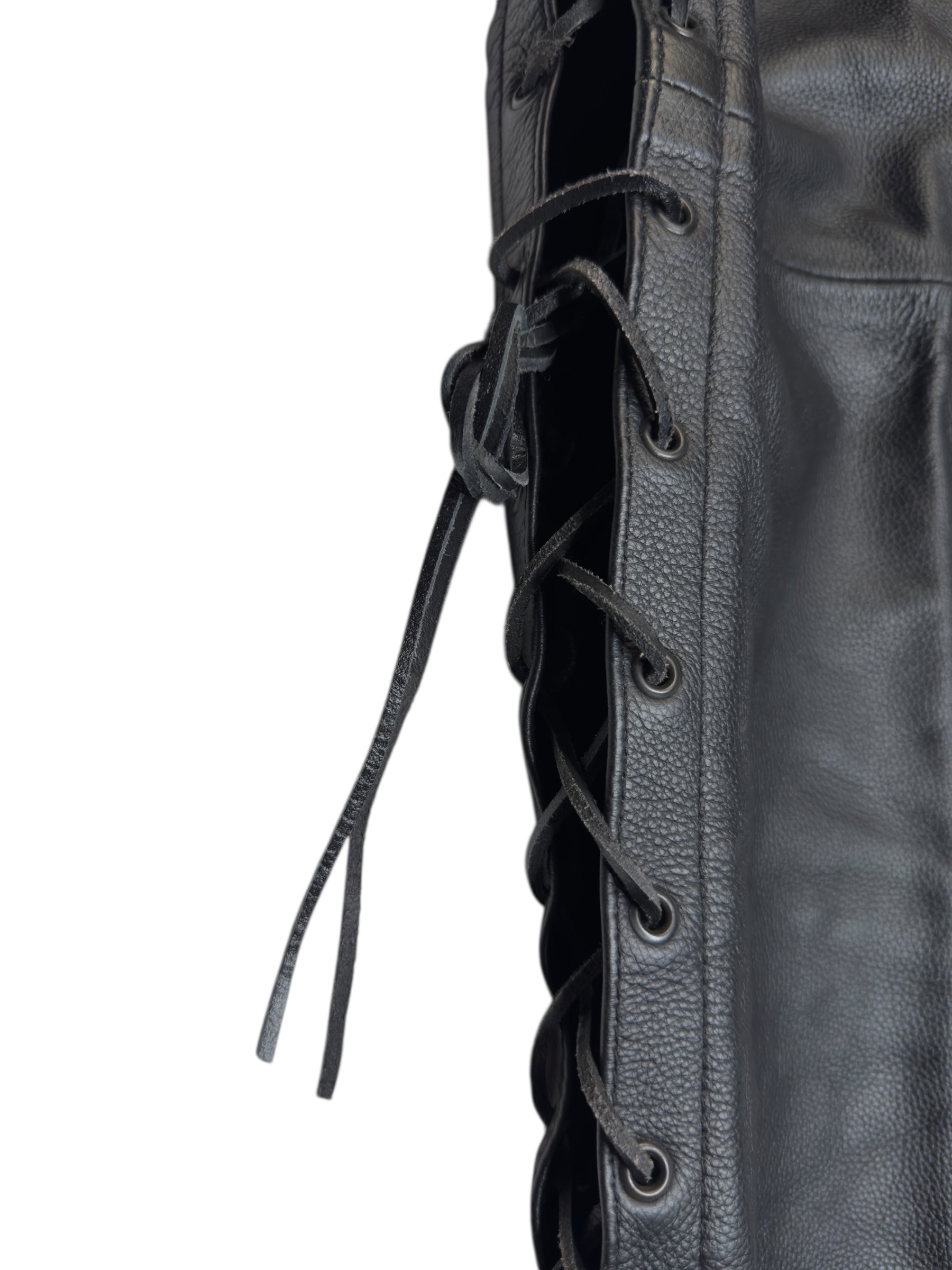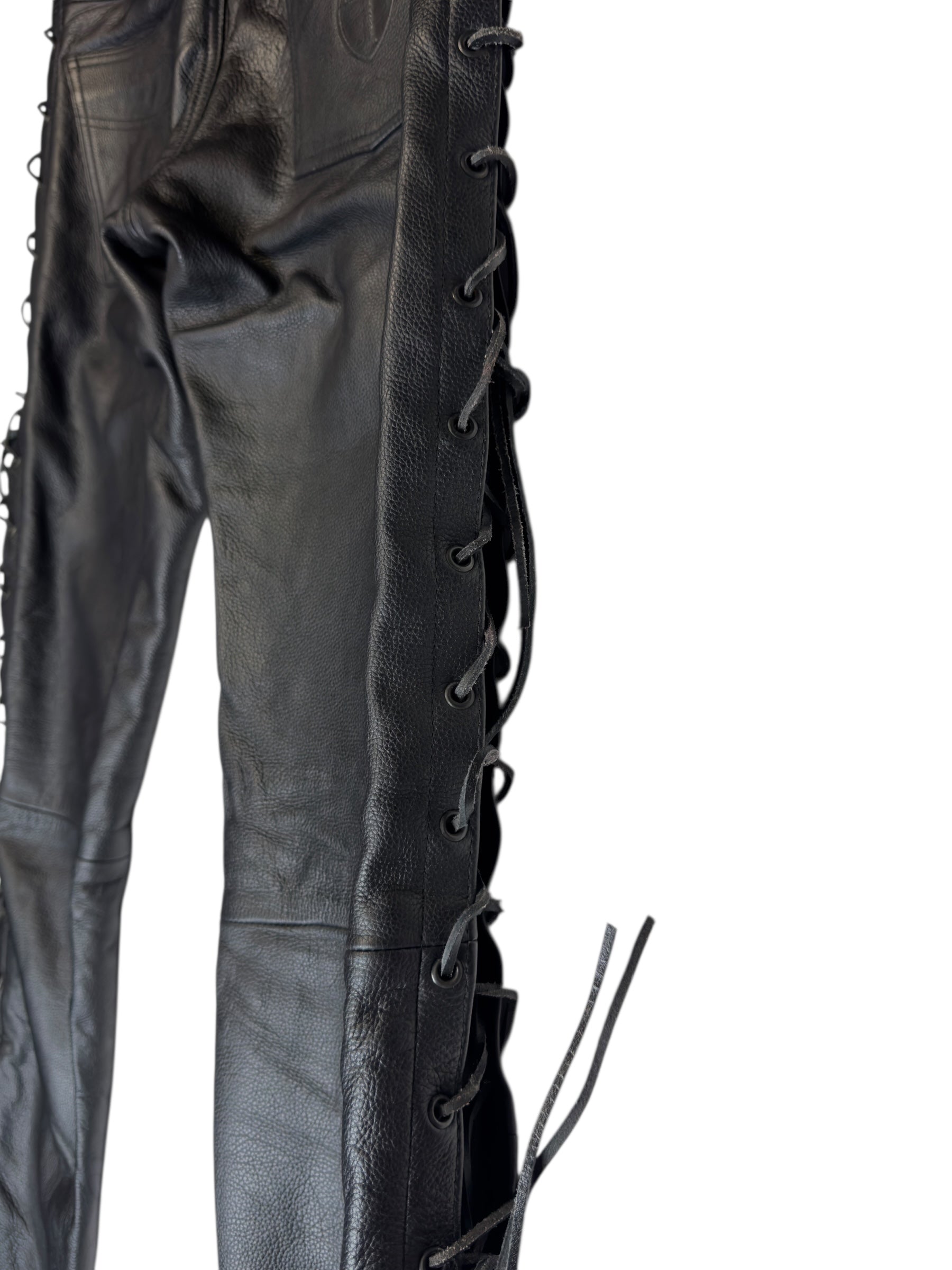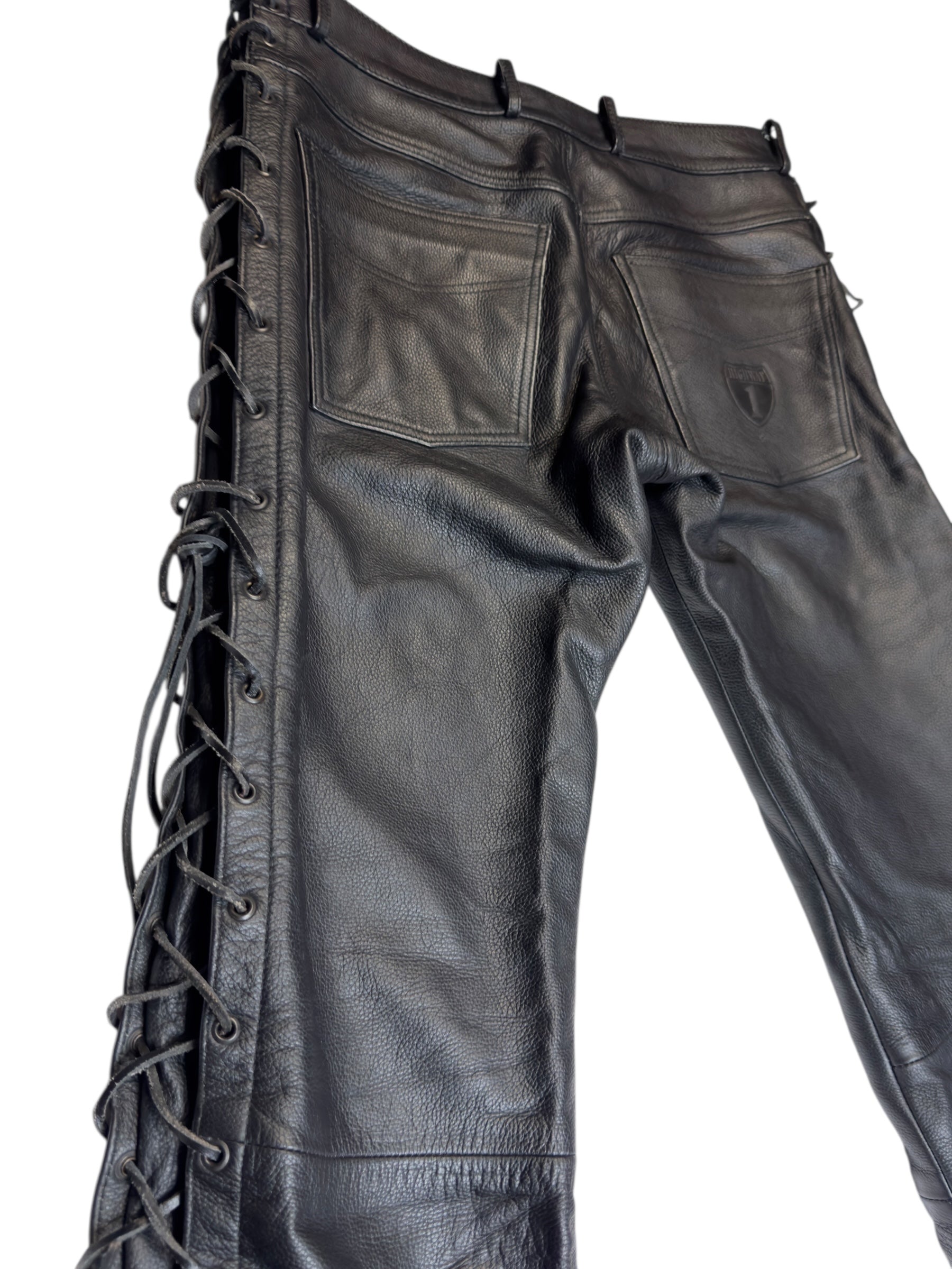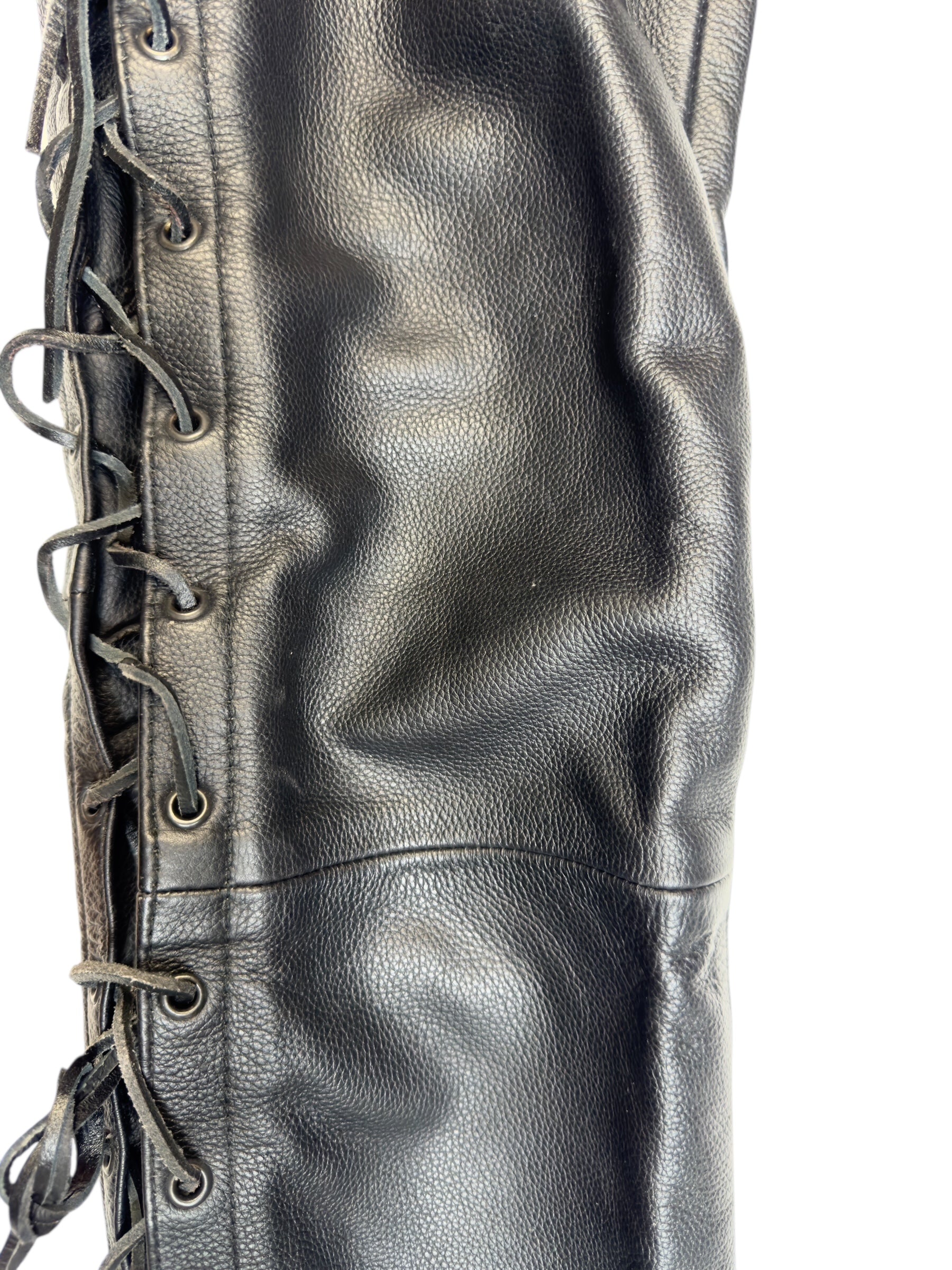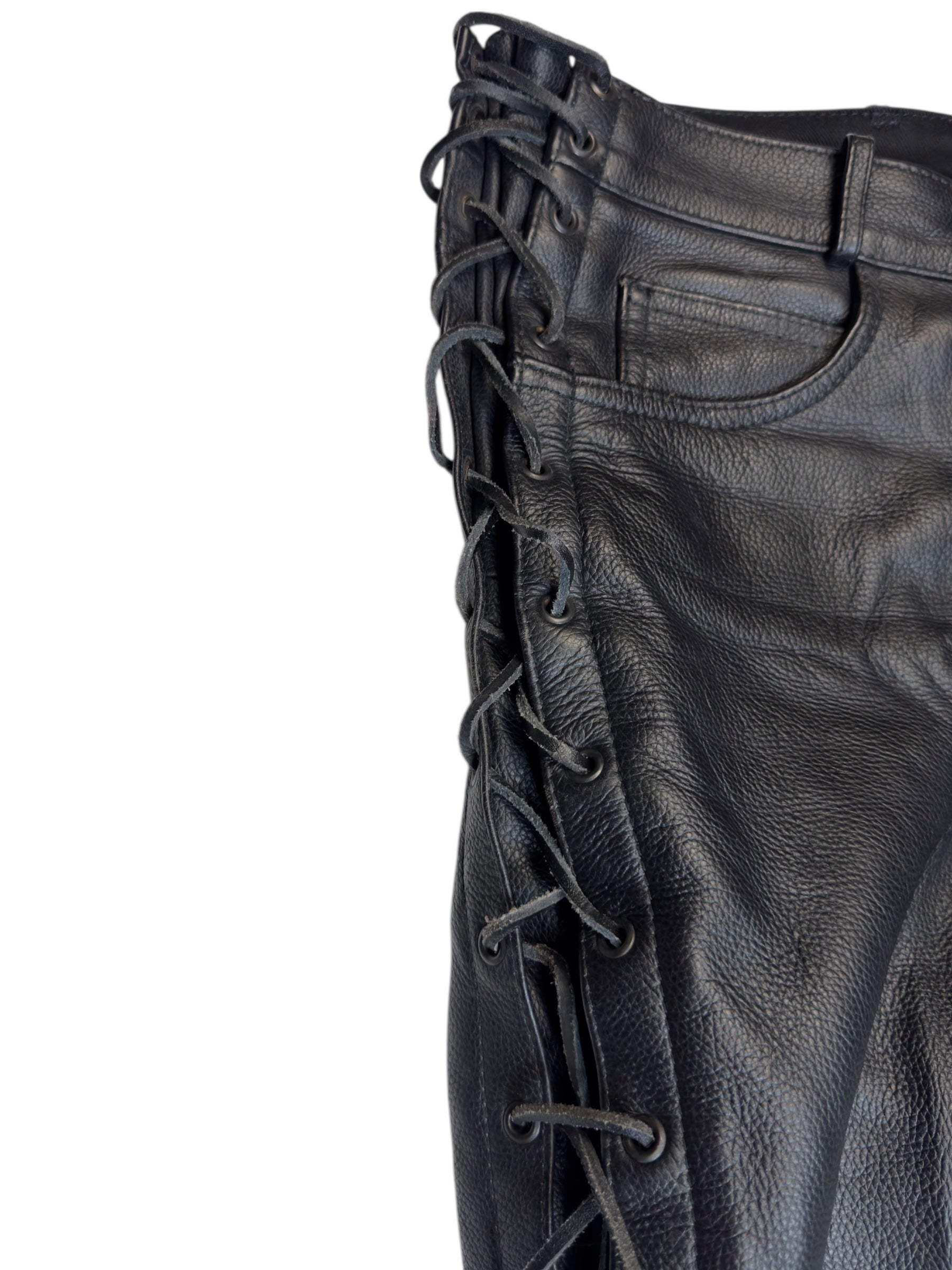 Vintage 2000s Men's Moto Black Mid Rise Leather Side Lace Up Racing Pants | 34 Inch Waist