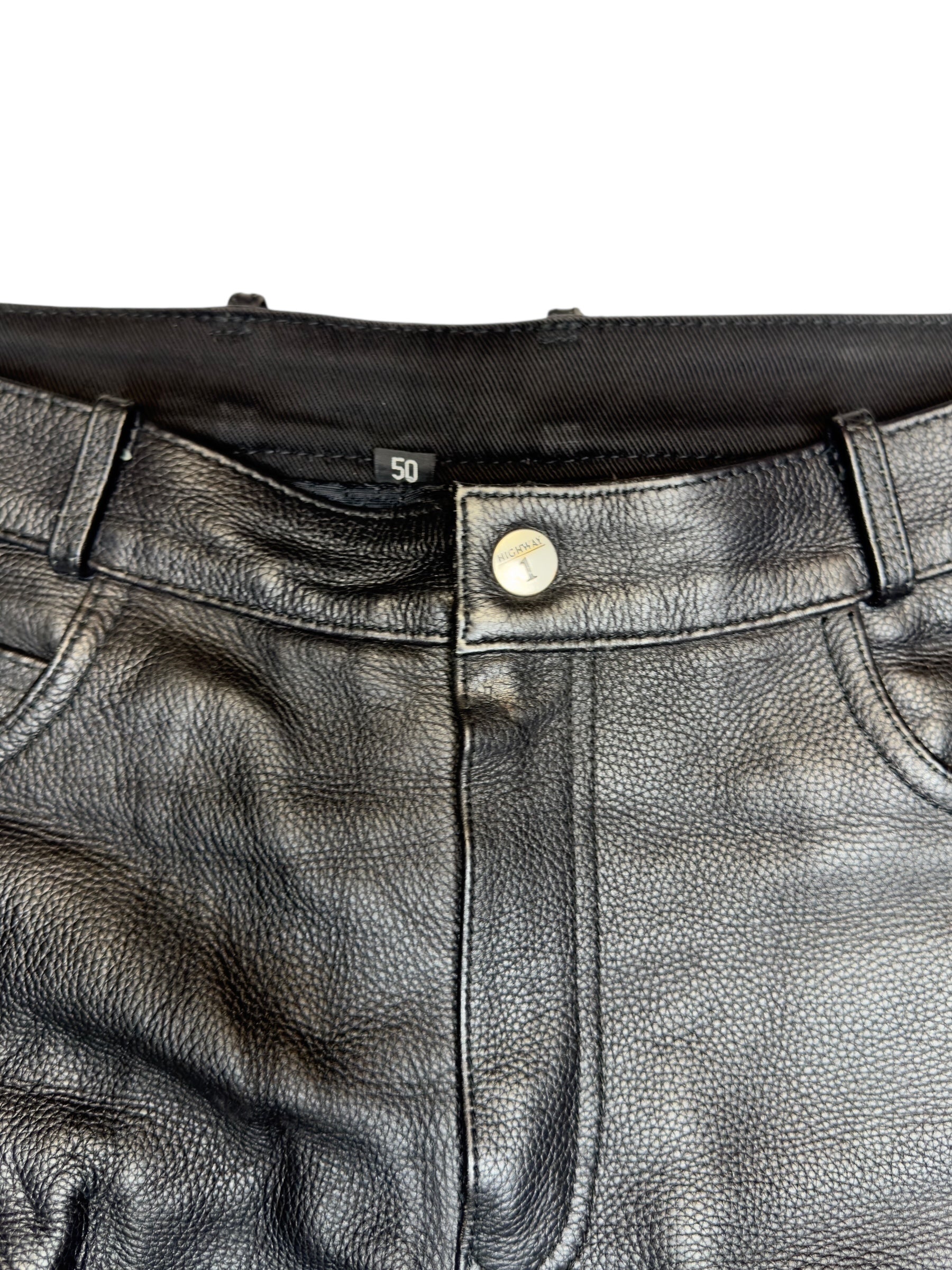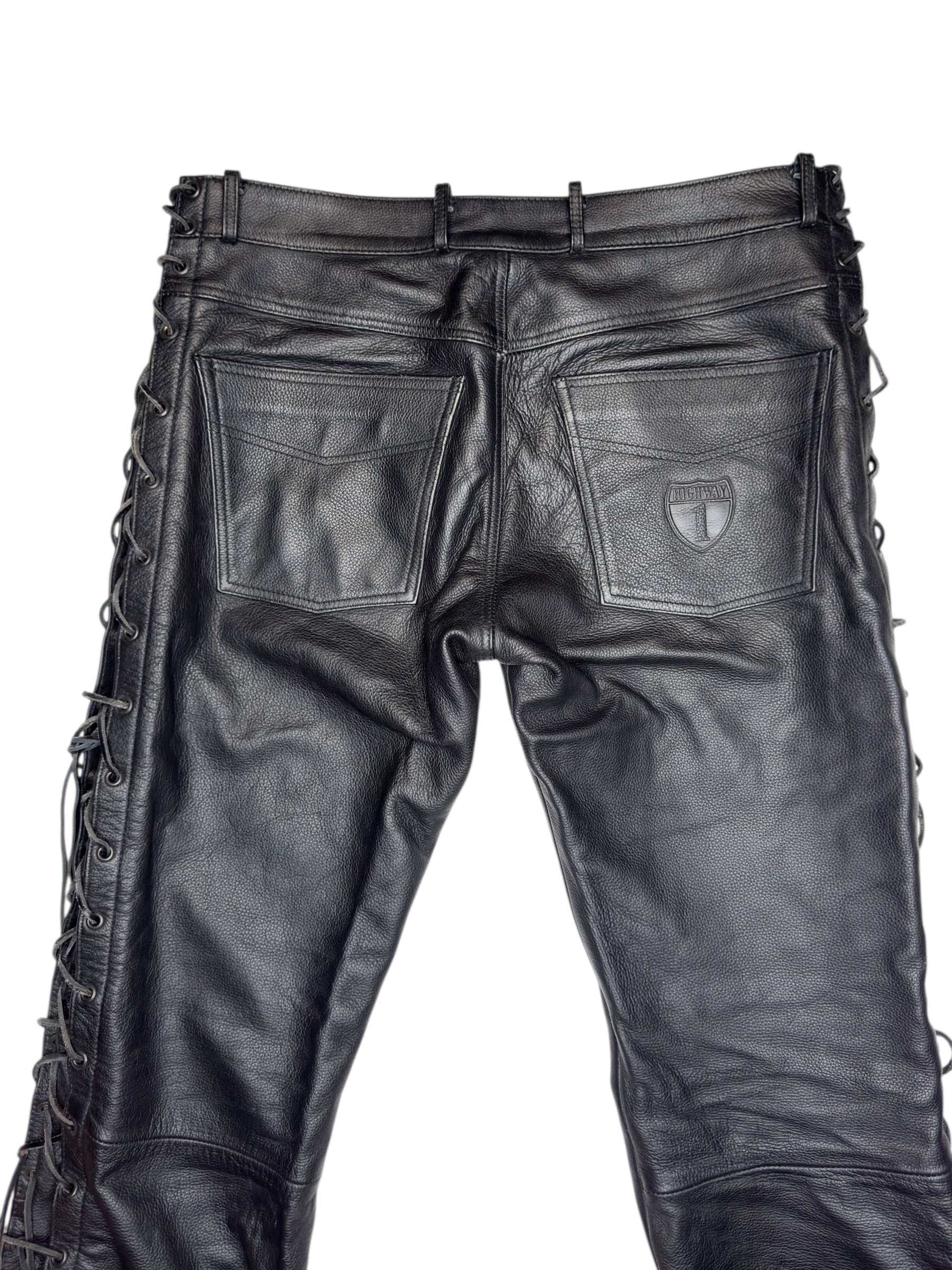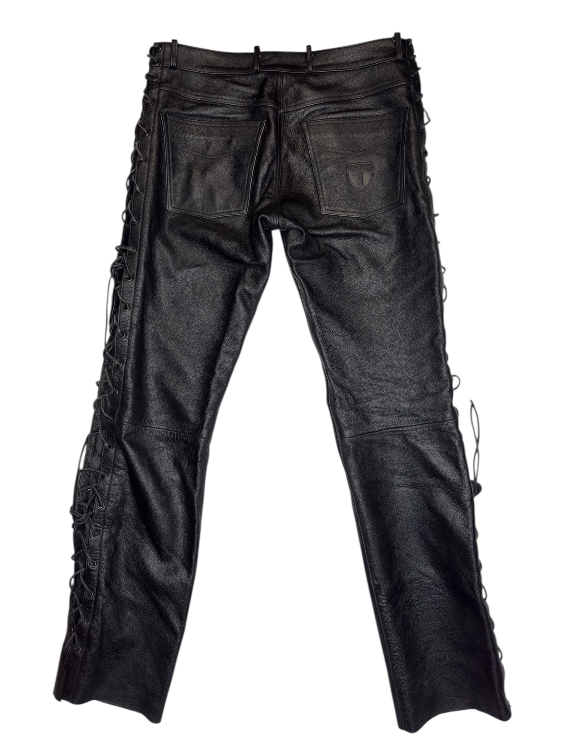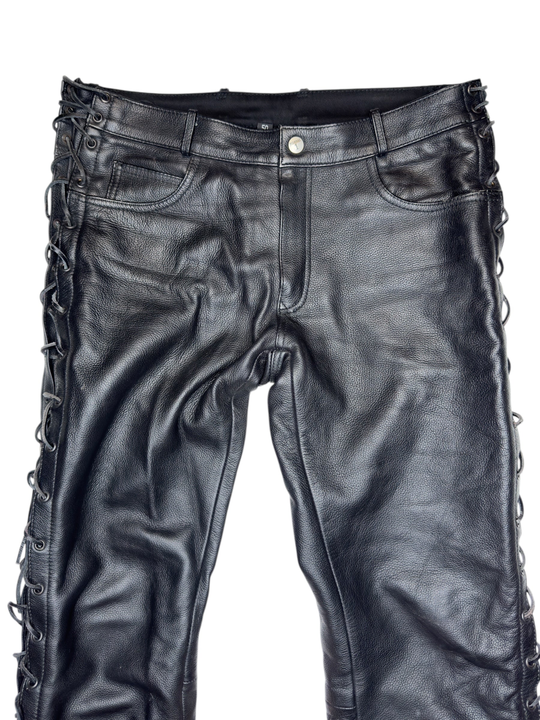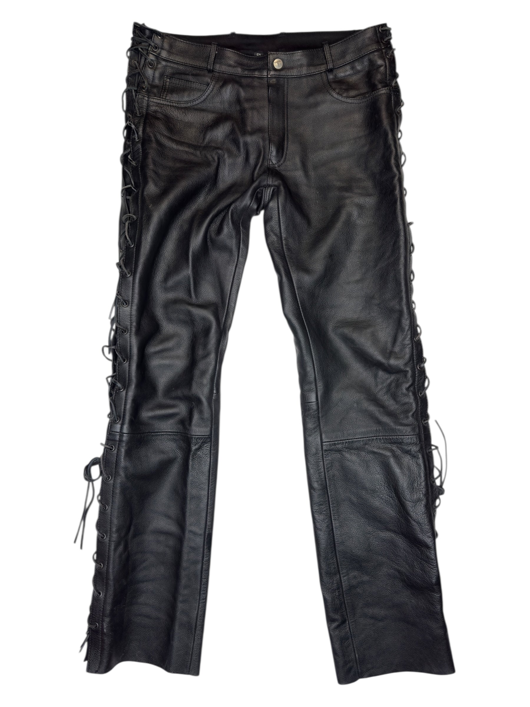 Vintage 2000s Men's Moto Black Mid Rise Leather Side Lace Up Racing Pants | 34 Inch Waist