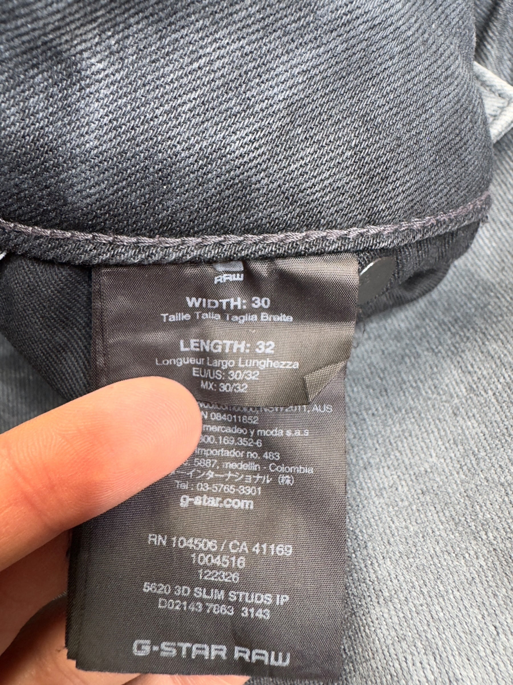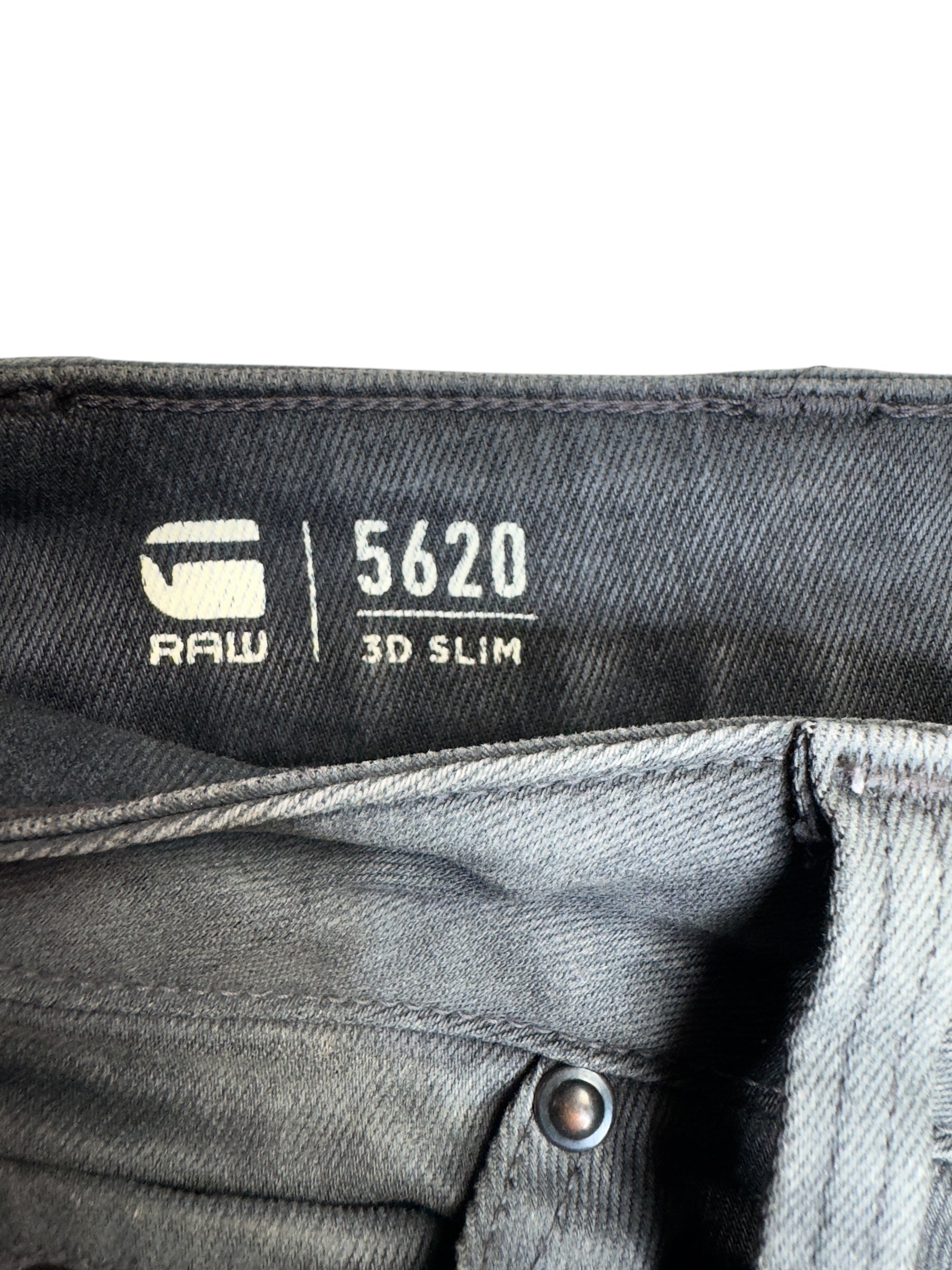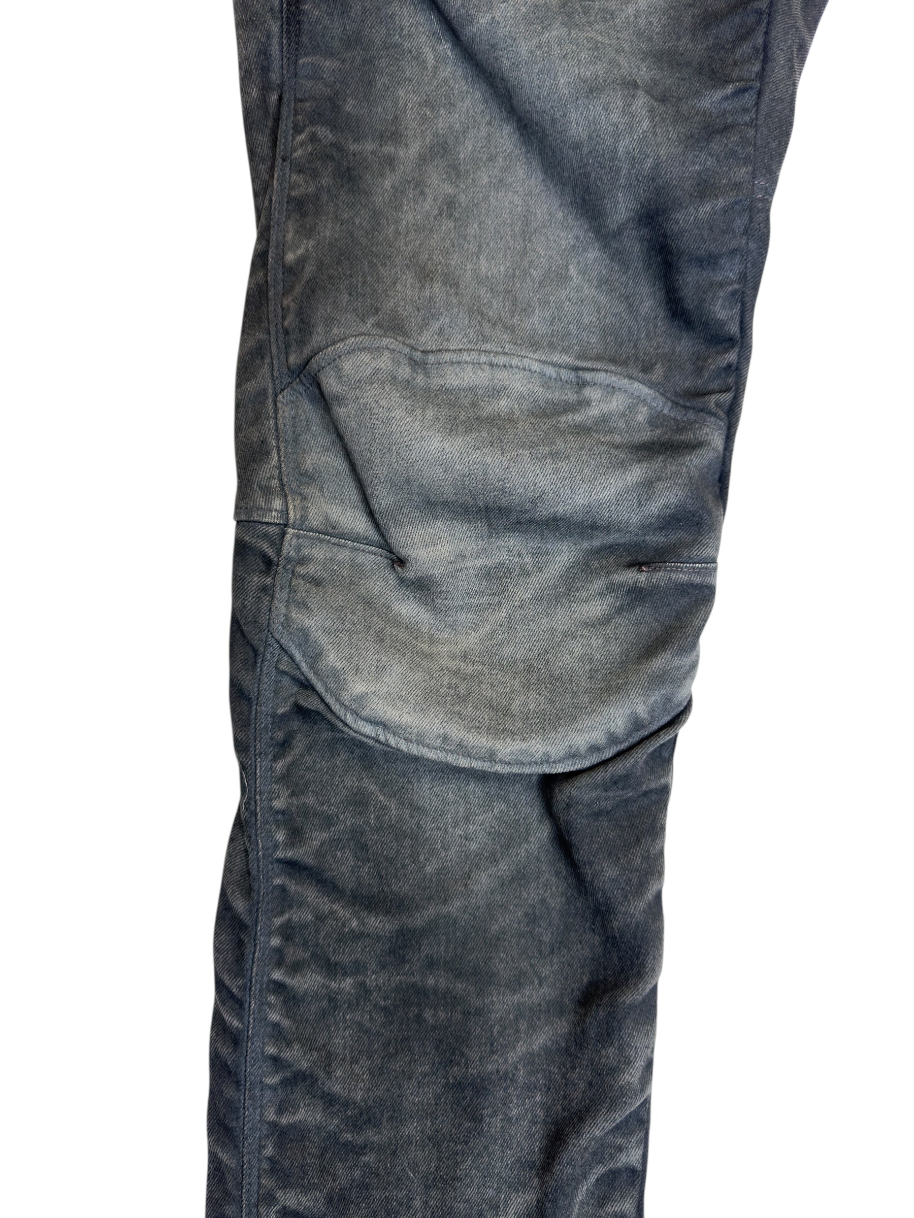 Vintage 2000s Men’s G-Star Raw Moto Patchwork Logo Tapered Grey Denim Slim Fit Jeans with Grommet Detail | 31 Inch Waist