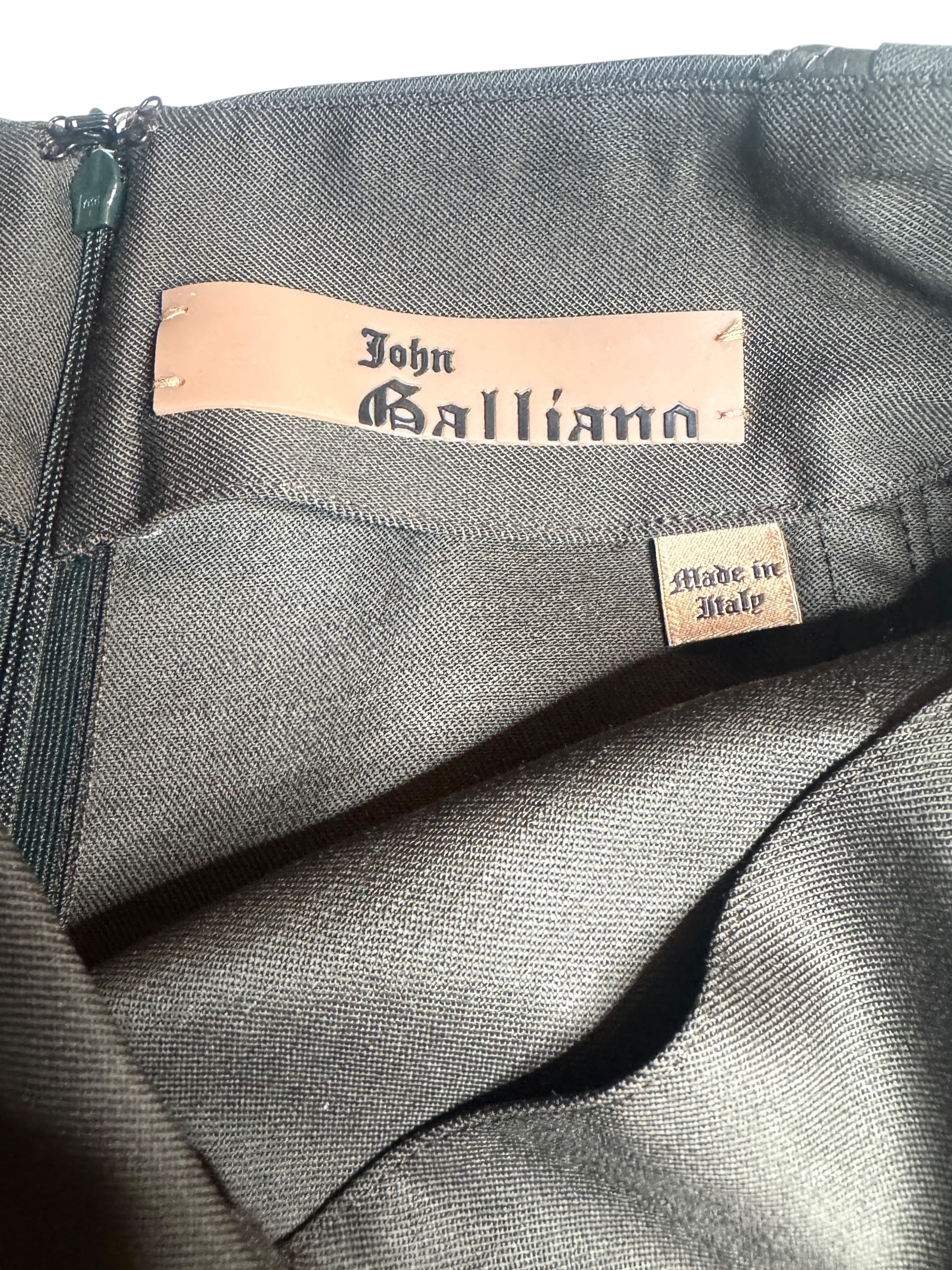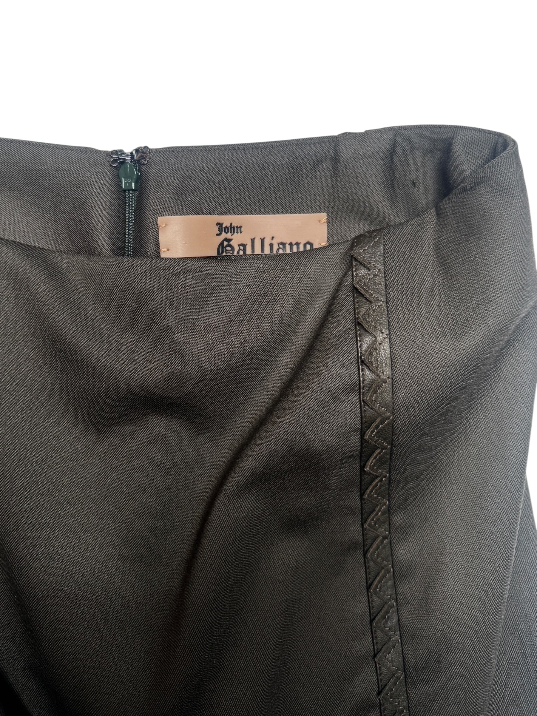 Vintage 2000s Galliano Moss Green Straight Silhouette Midi Skirt | Size XS