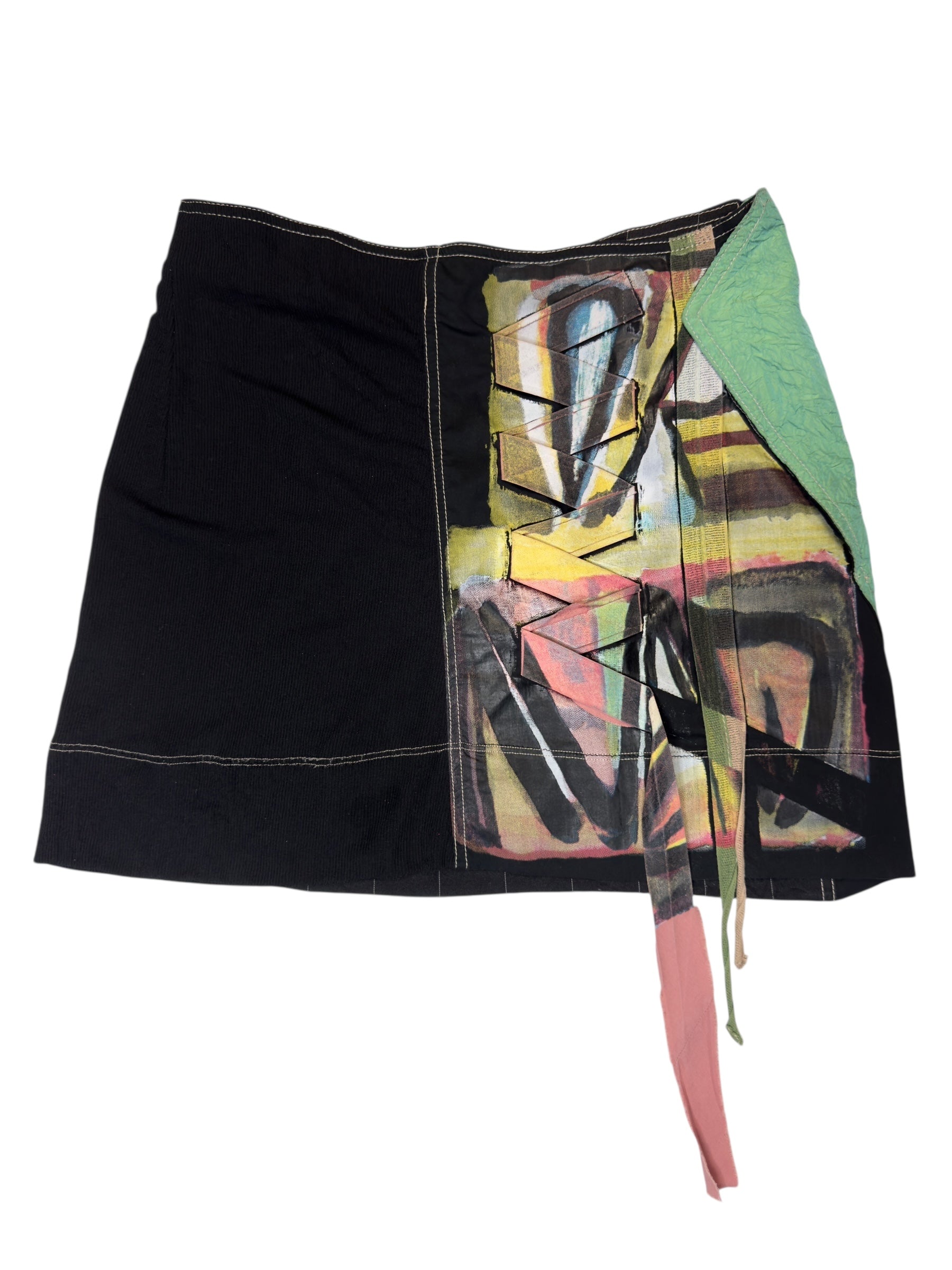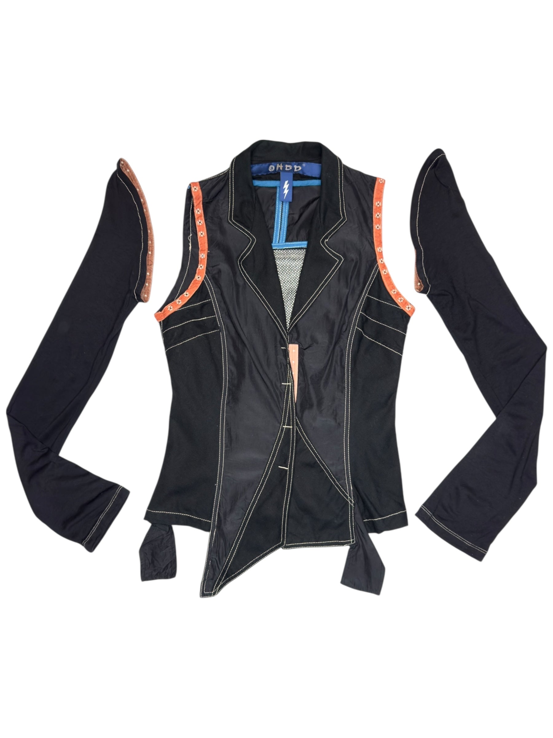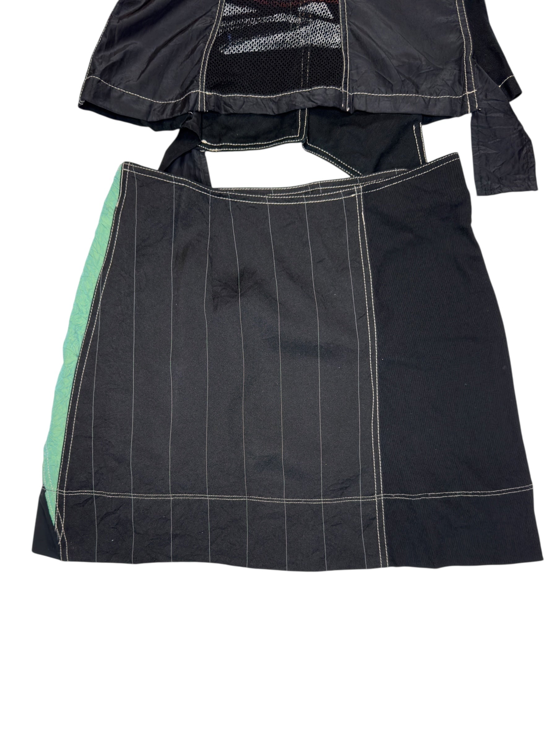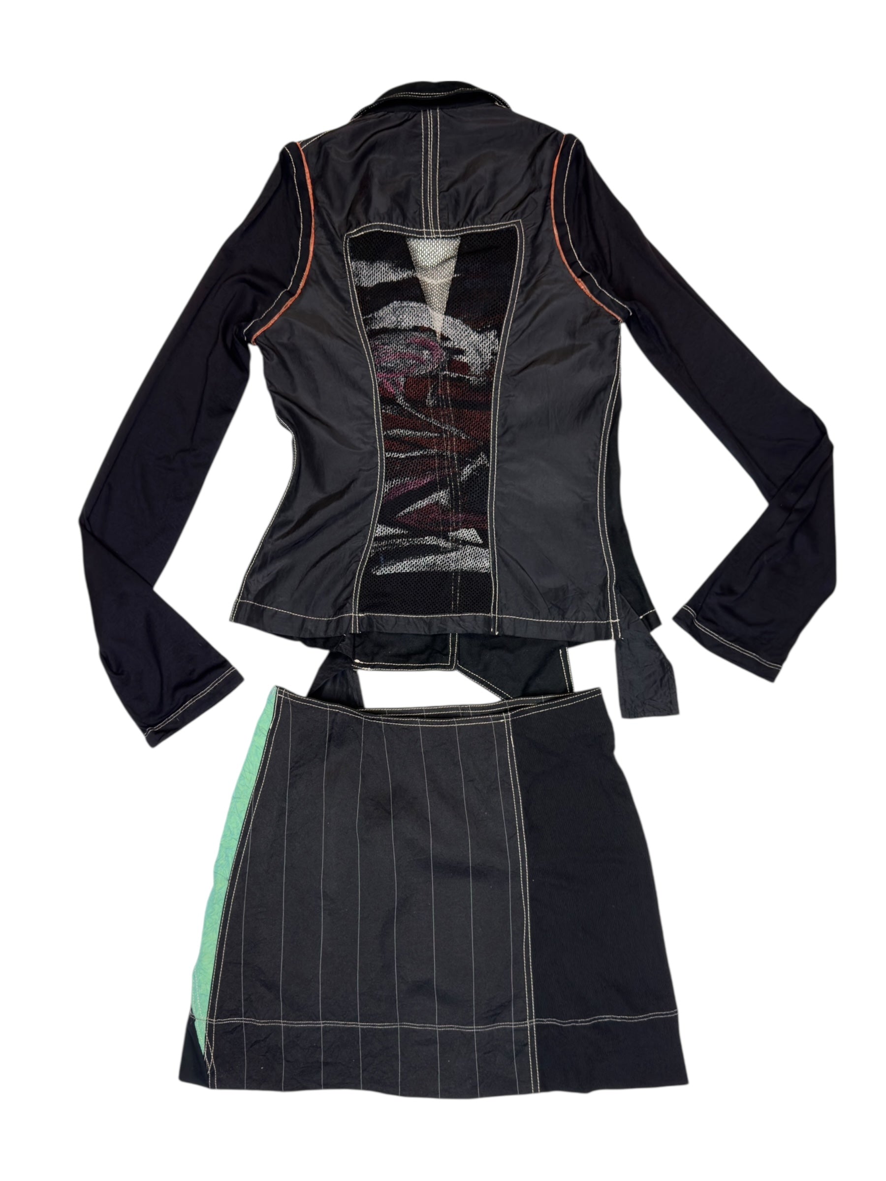 Vintage 2000s OHDD by Save the Queen Subversive Abstract Screen Printed Cutout Blazer & Low Rise Mini Skirt 2 Piece Set | Size S