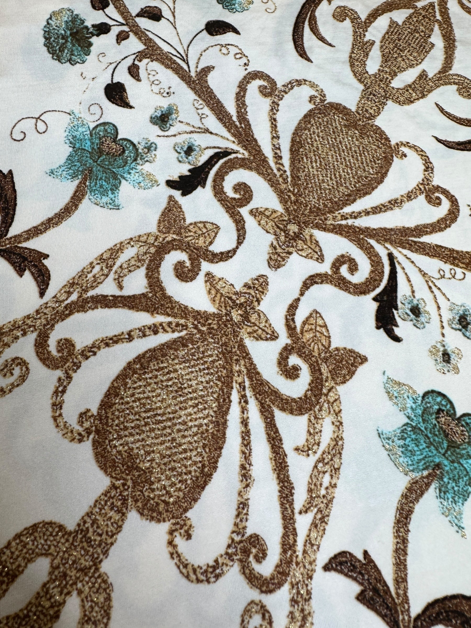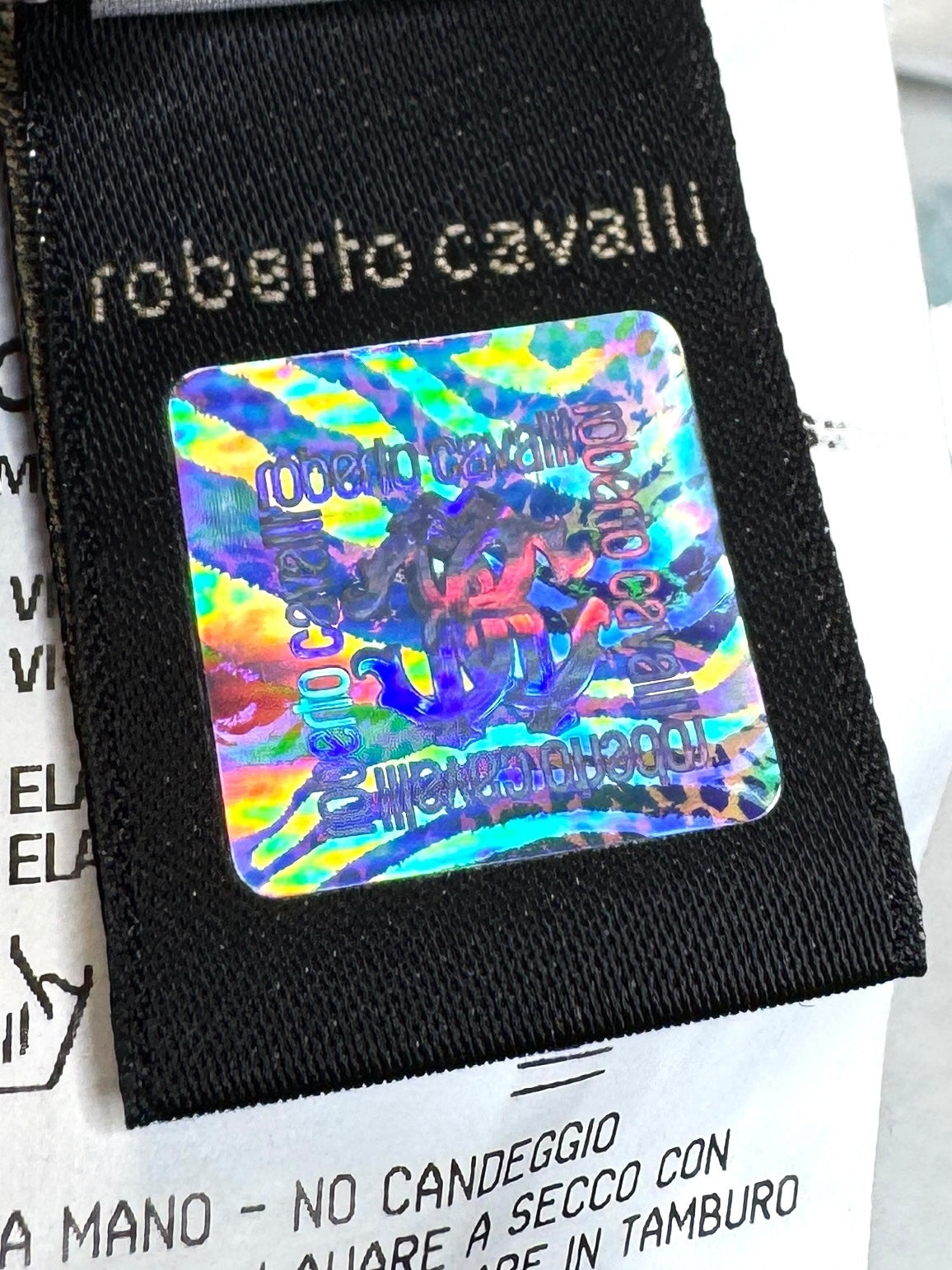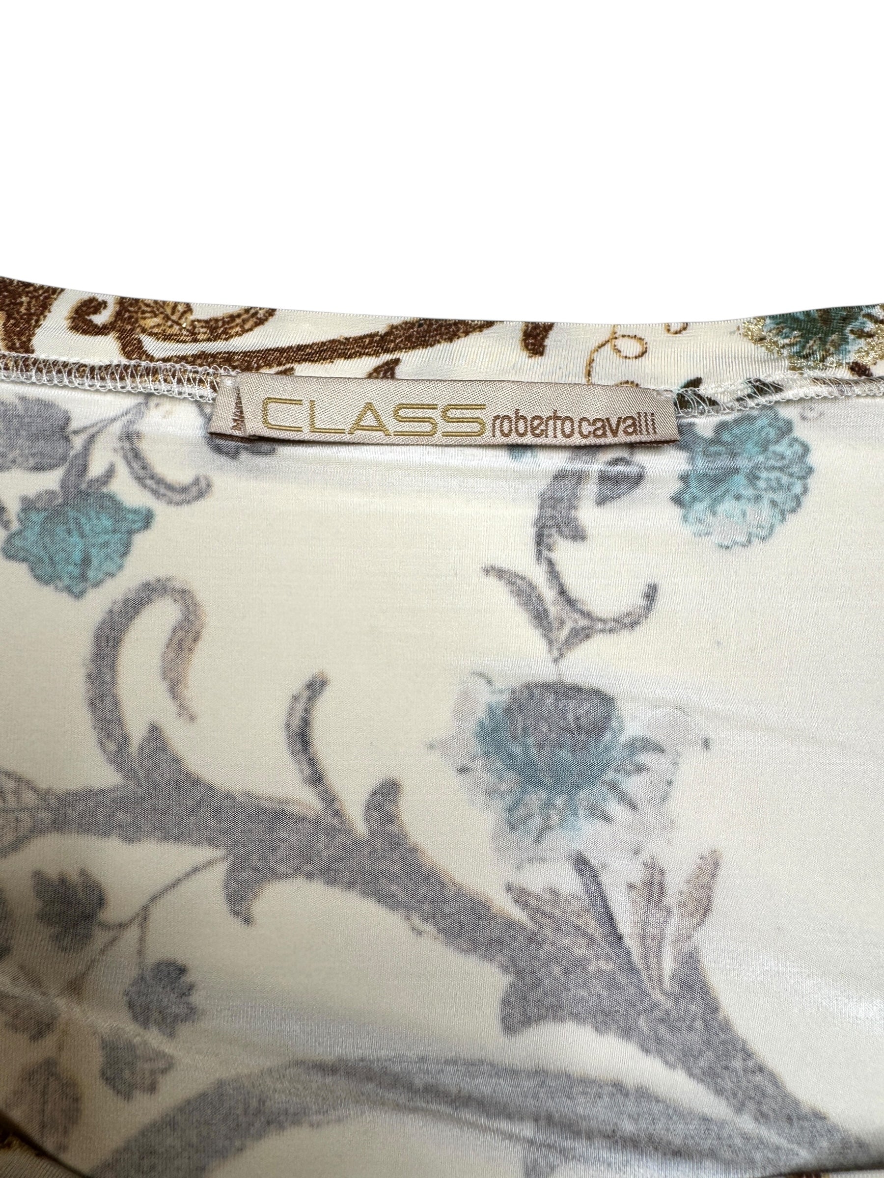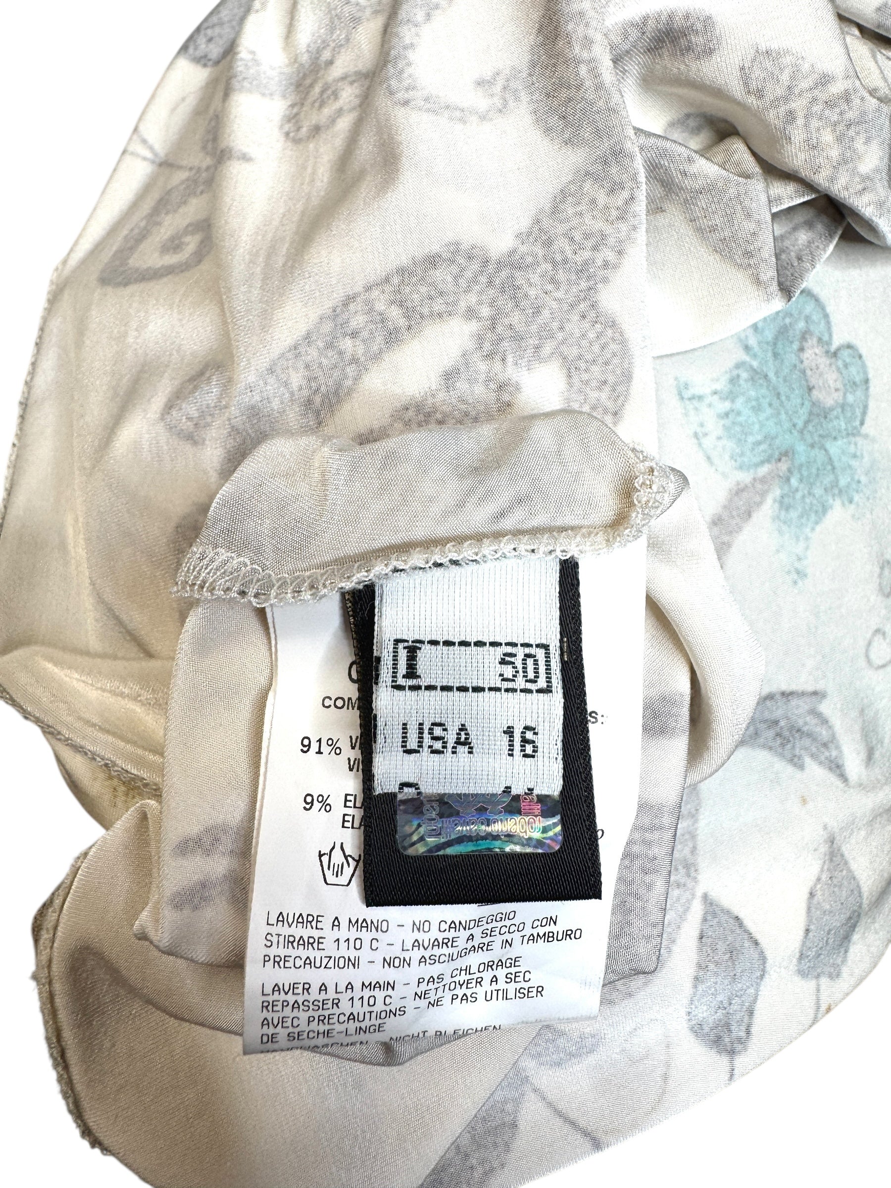Vintage 2000s Roberto Cavalli Abstract Leopard Fleur-de-Lis Patterned Scoop Neck Long Sleeve Top | Size XL
