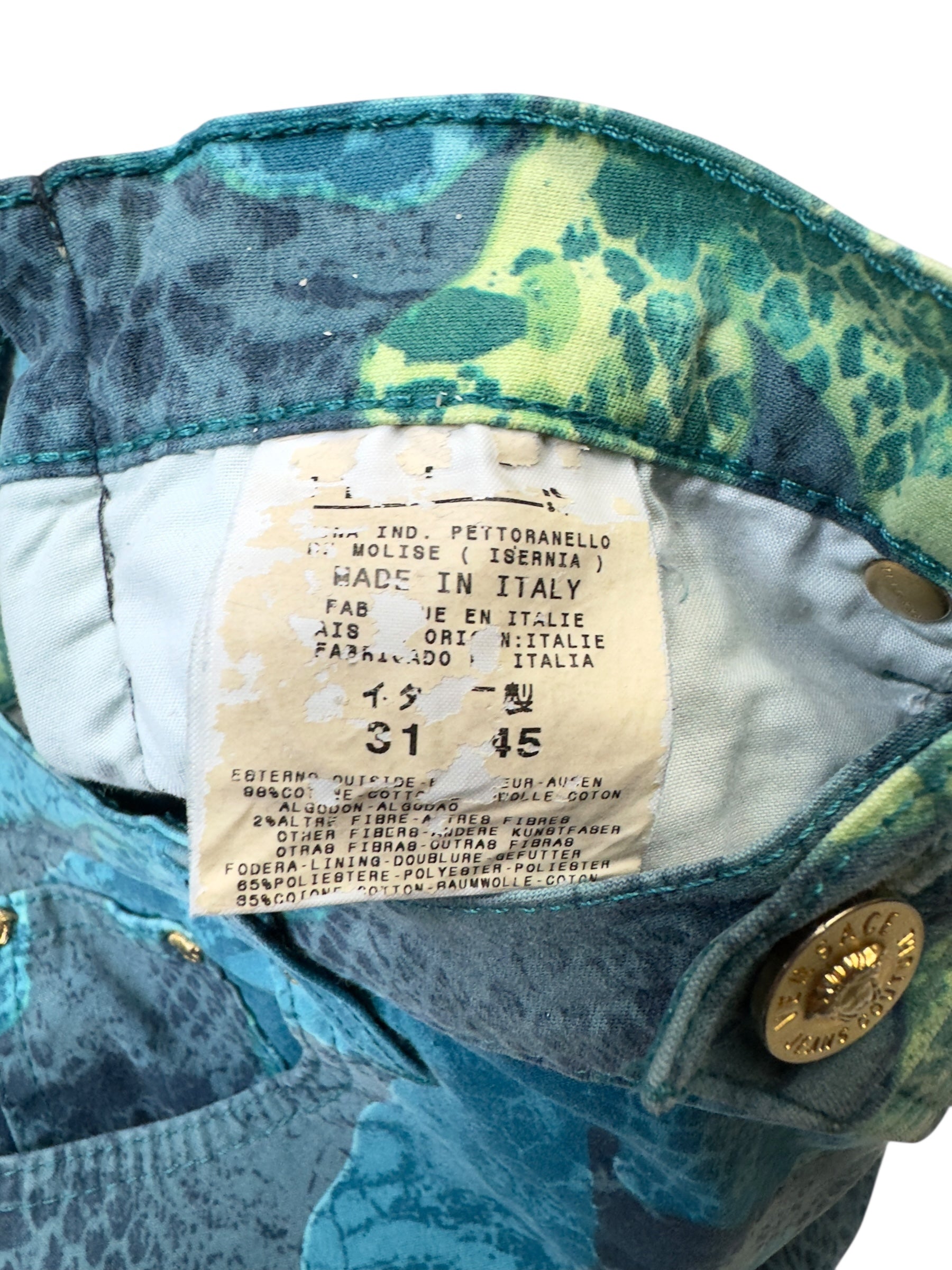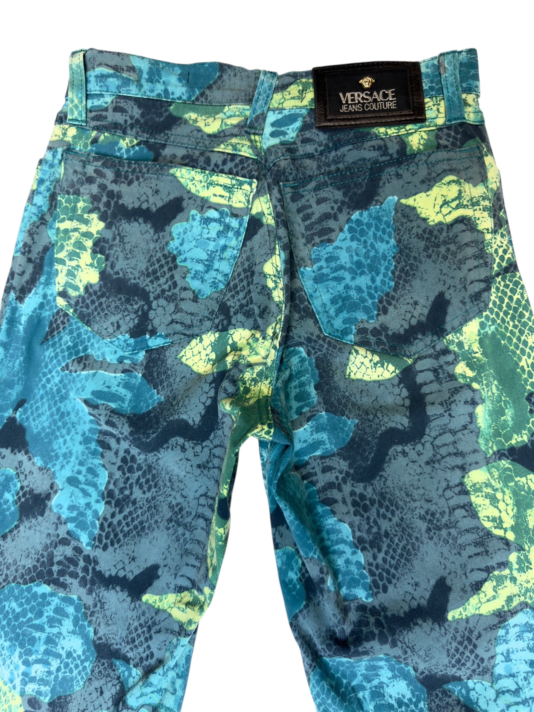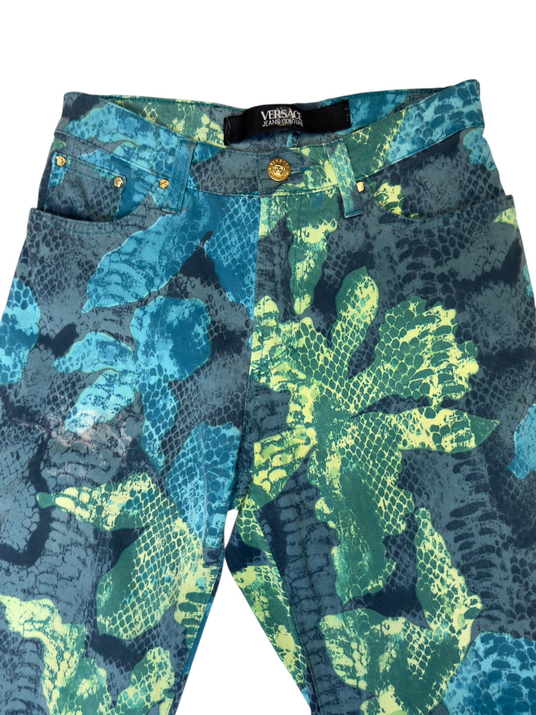 Vintage 2000s Versace Jeans Couture High Waisted Abstract Snake & Floral Patterned Slim Fit Jeans | 24 Inch Waist