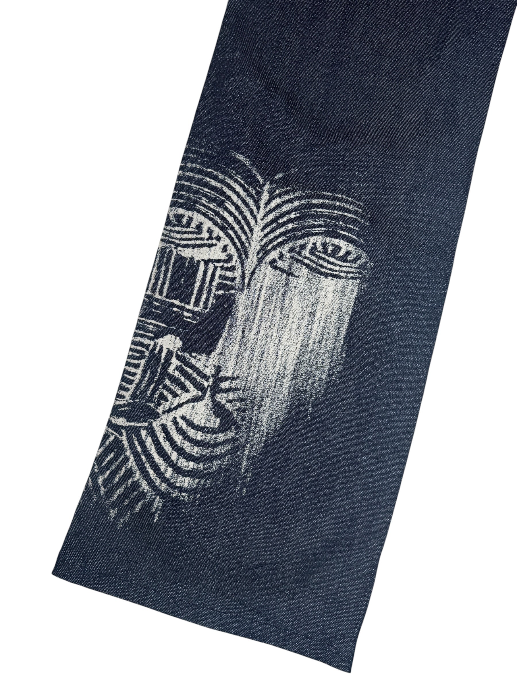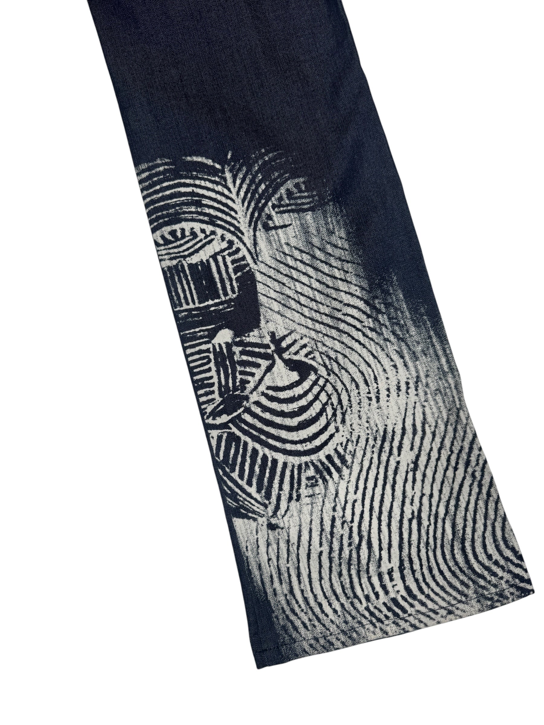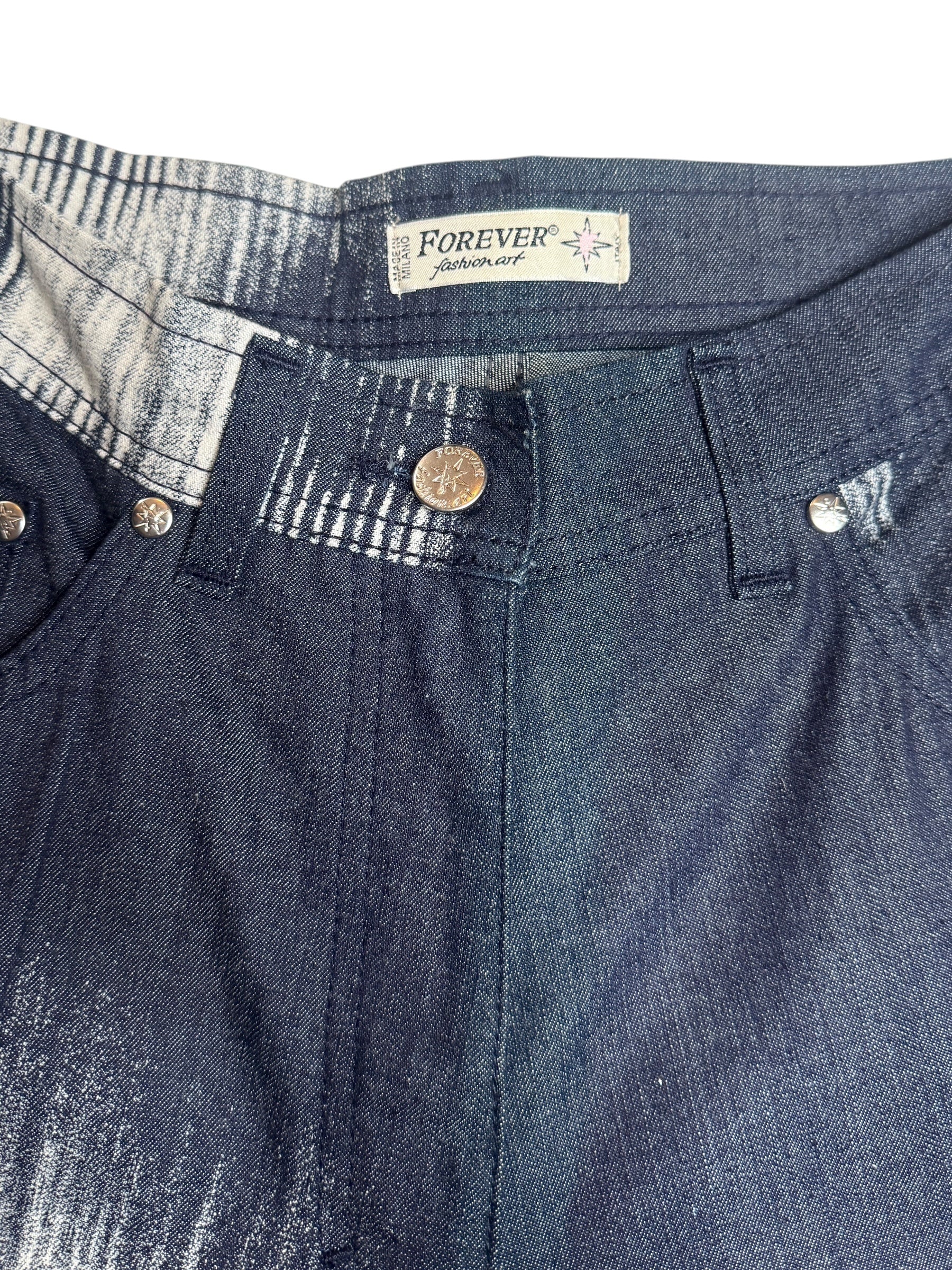 Vintage 2000s High Waisted Abstract Graphic Blue & White Tribal Patterned Straight Leg Jeans | 28 Inch Waist