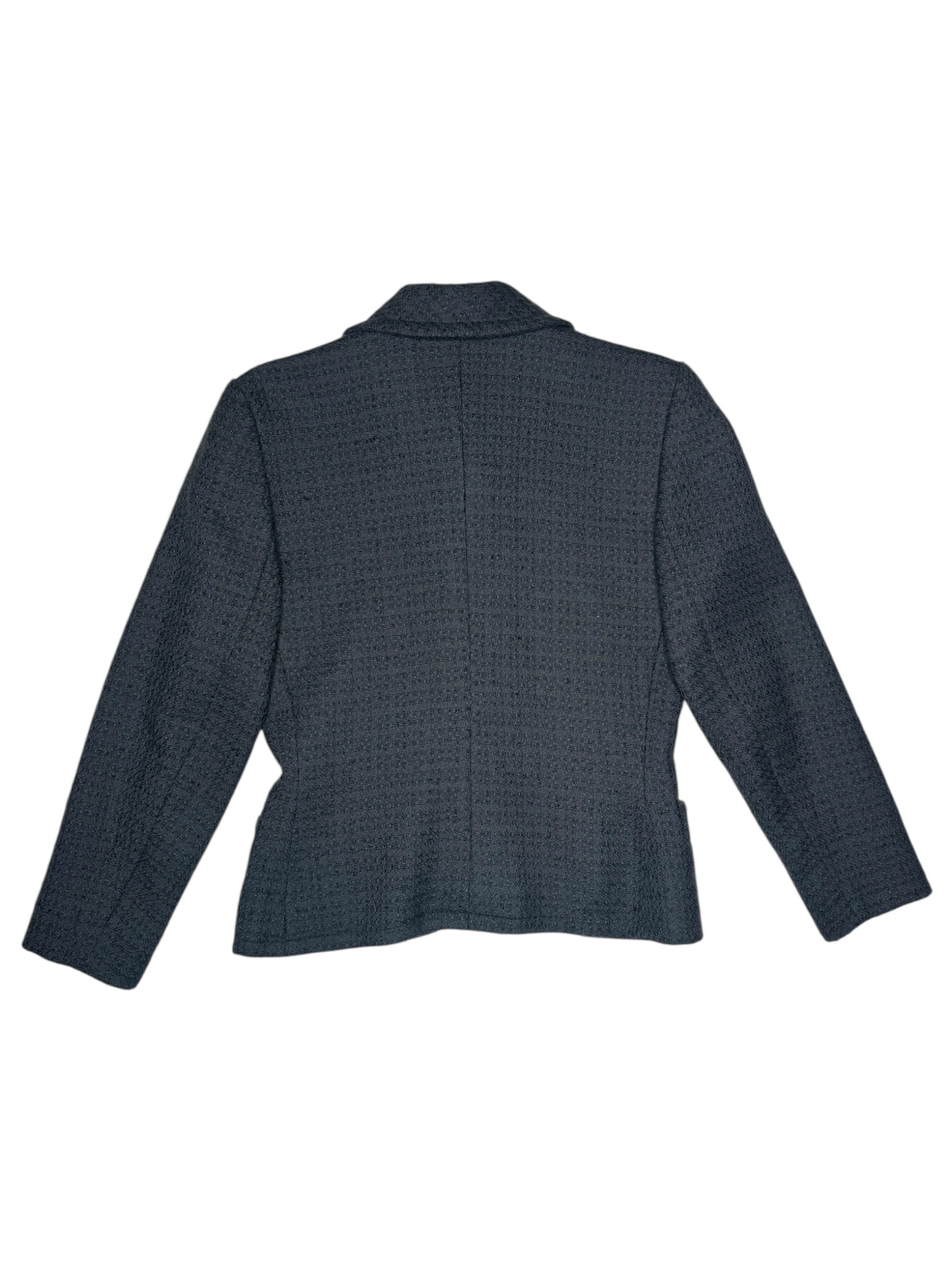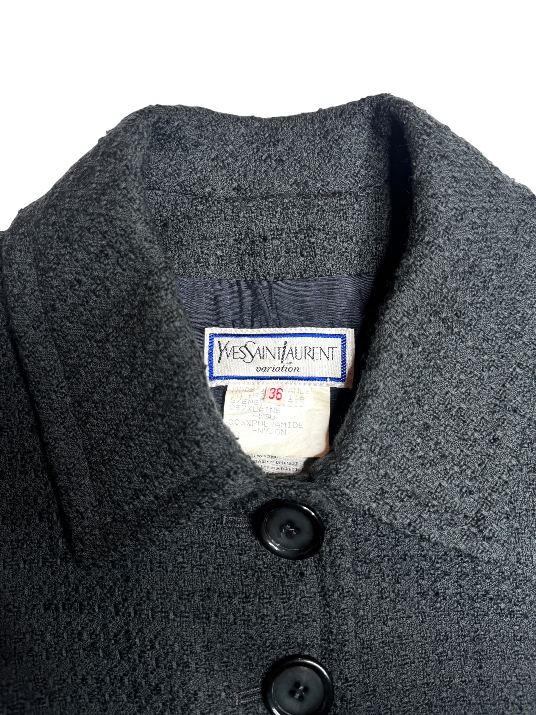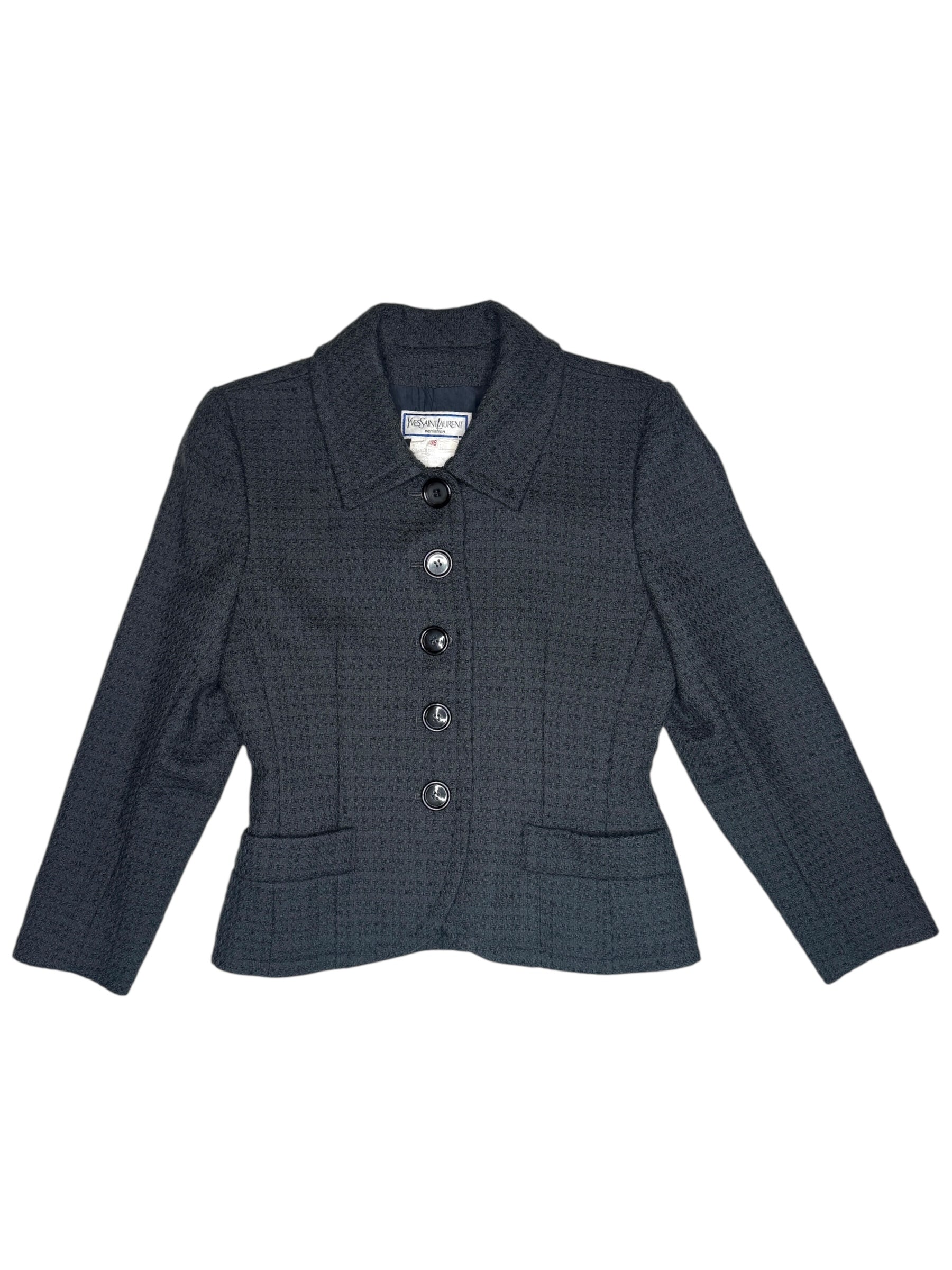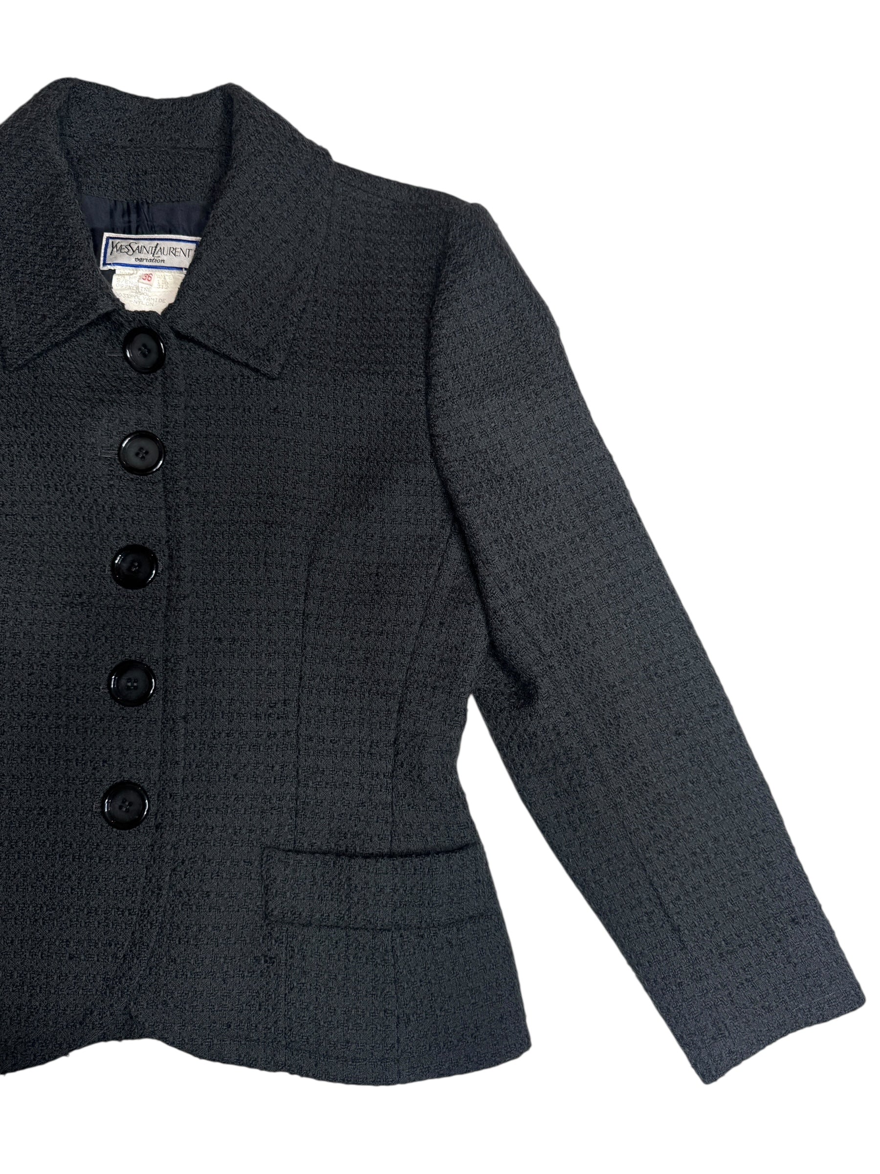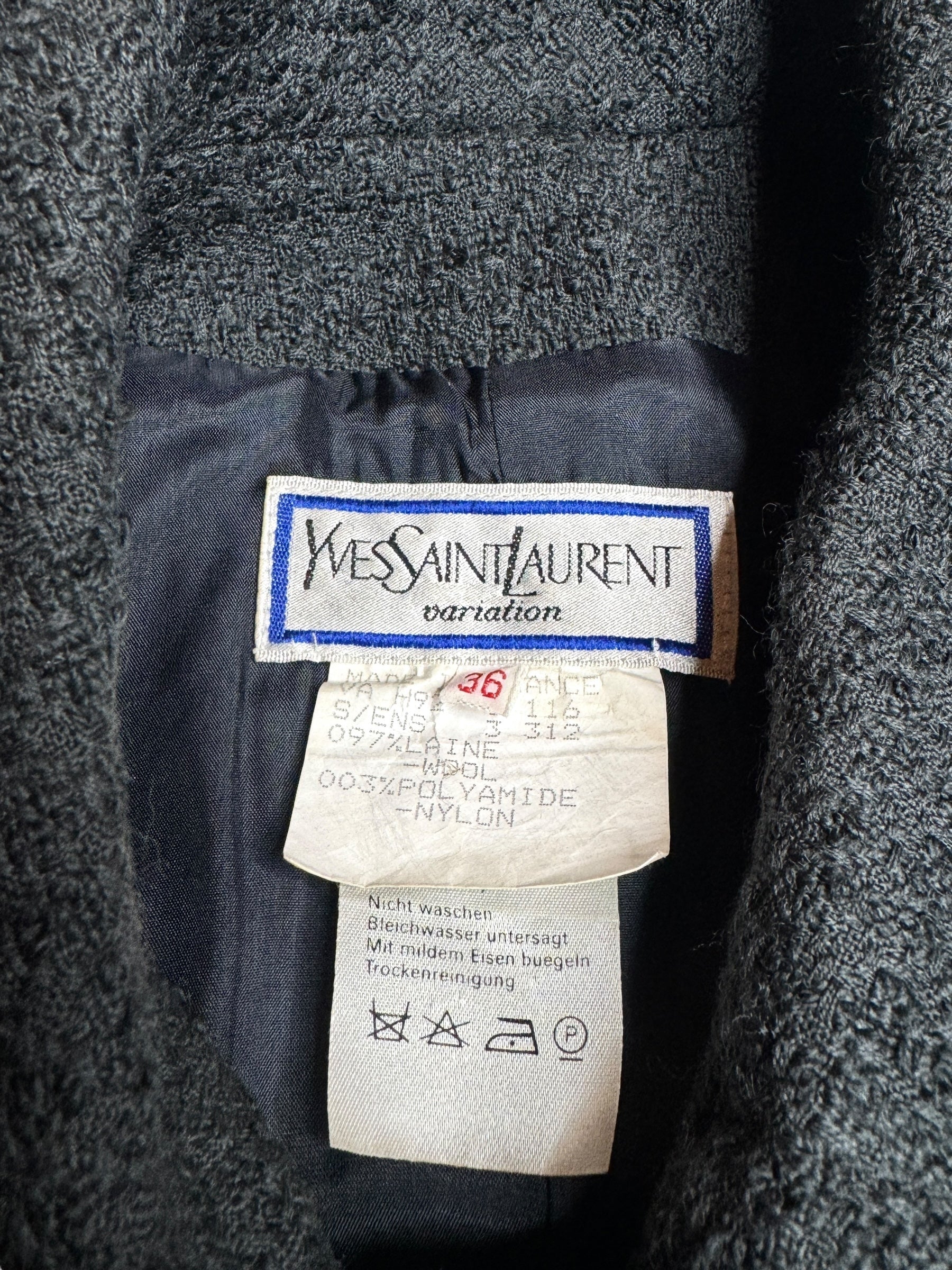 Vintage 90s Yves Saint Laurent Grey Wool Textured Weave Button Up Collared Blazer Jacket | Size XS-S