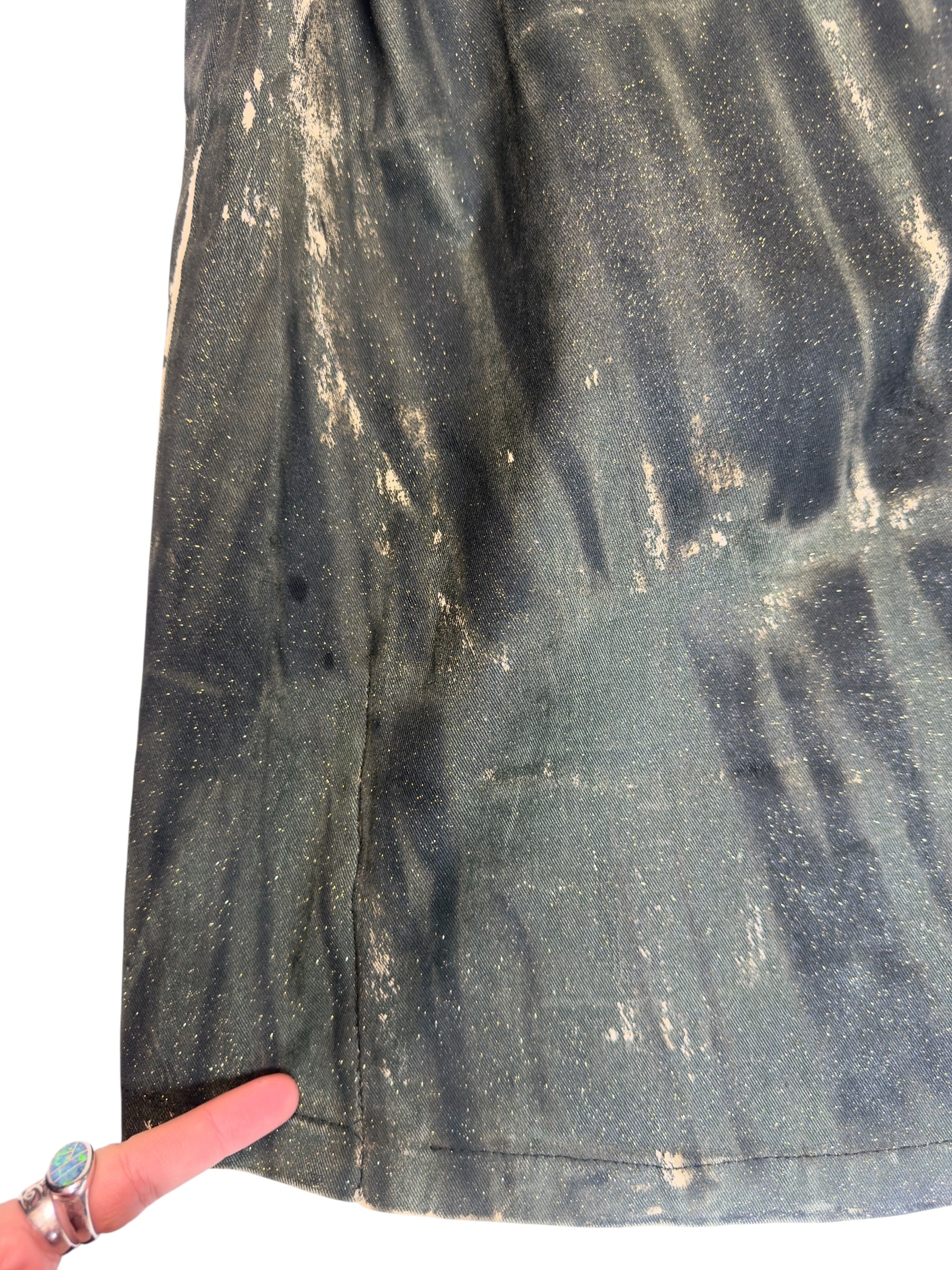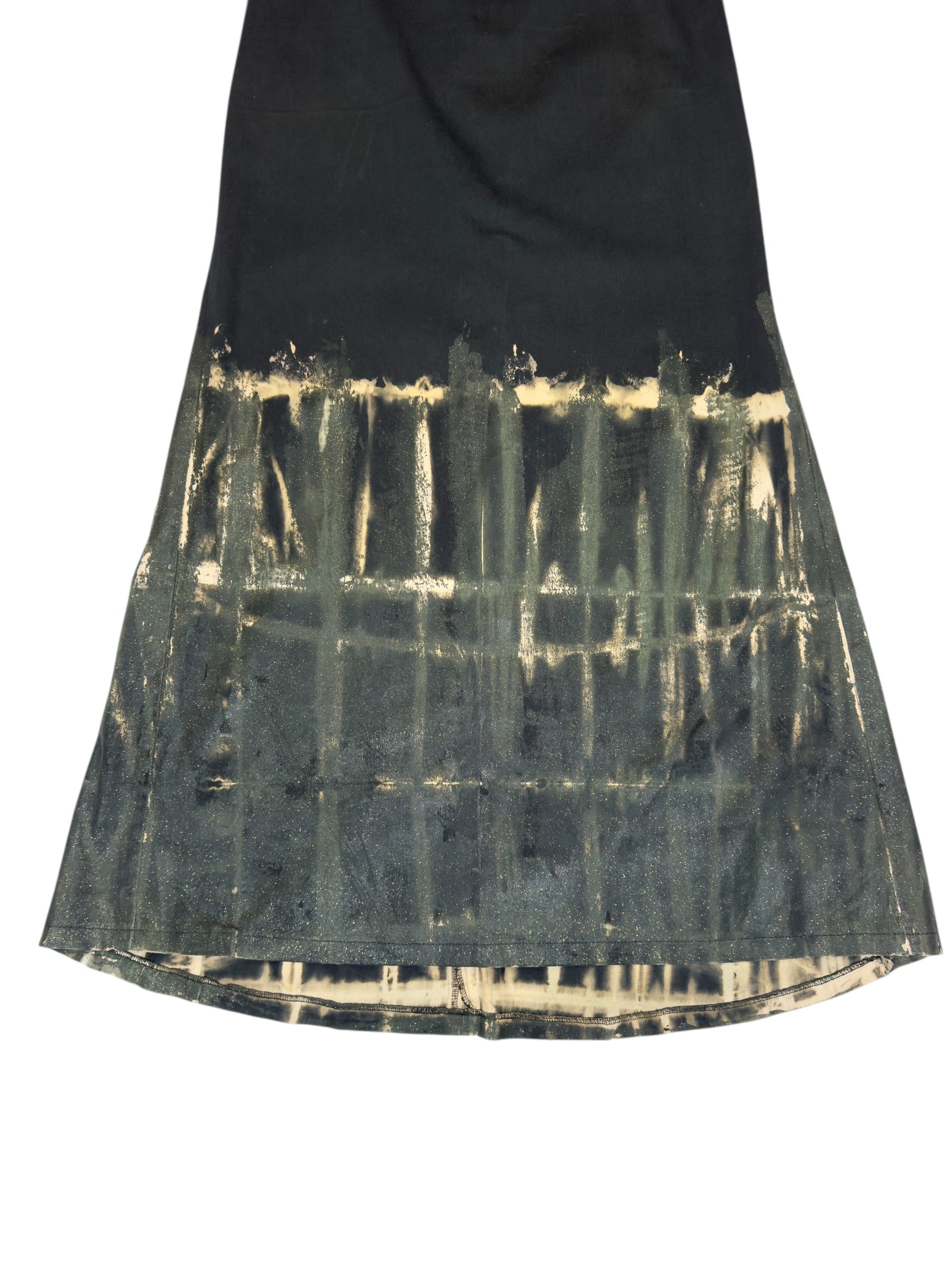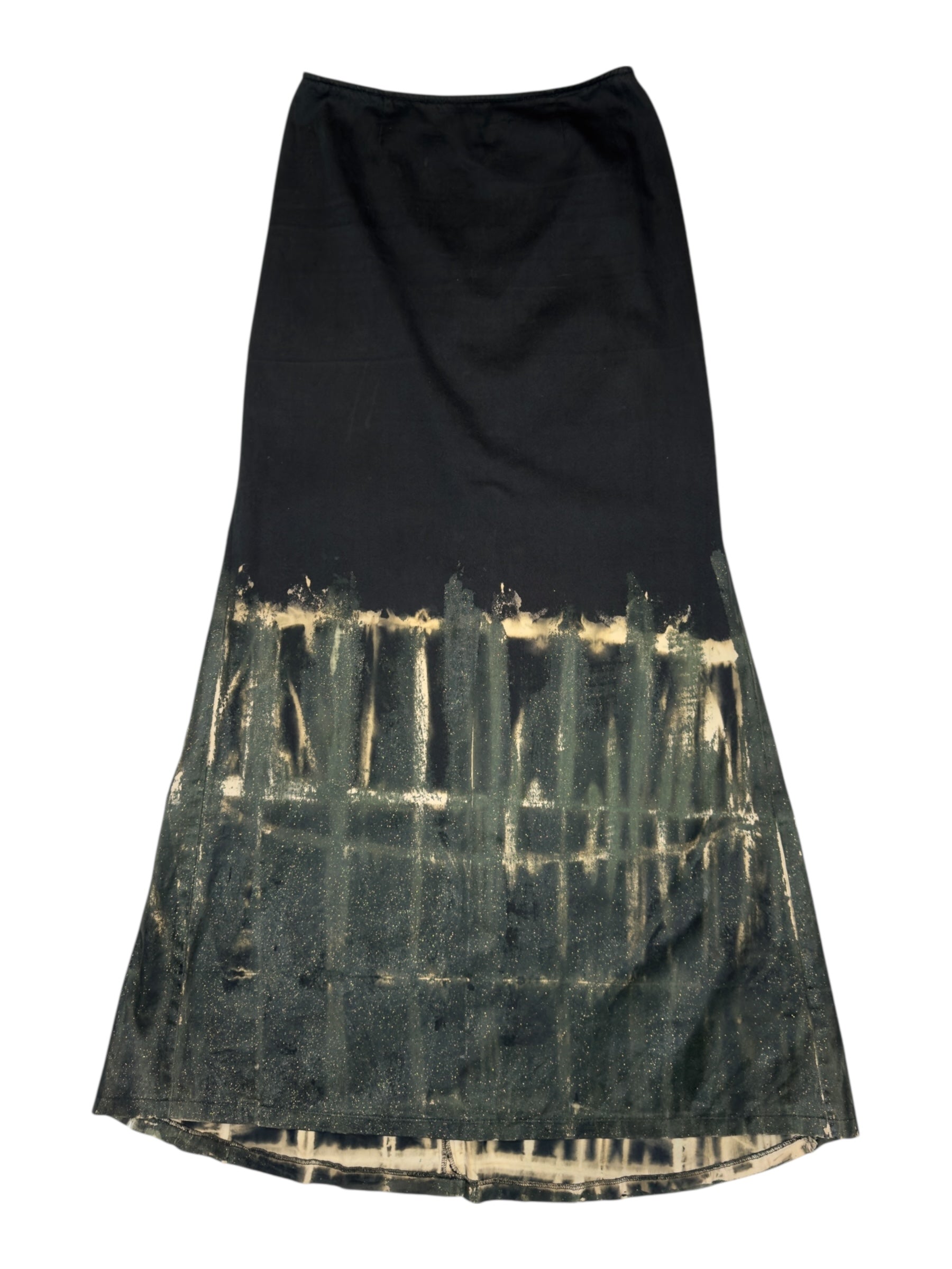 Vintage 2000s Kenzo Jeans High Rise Black & Green Glitter Painted Floor Length Maxi Skirt | Size S-M