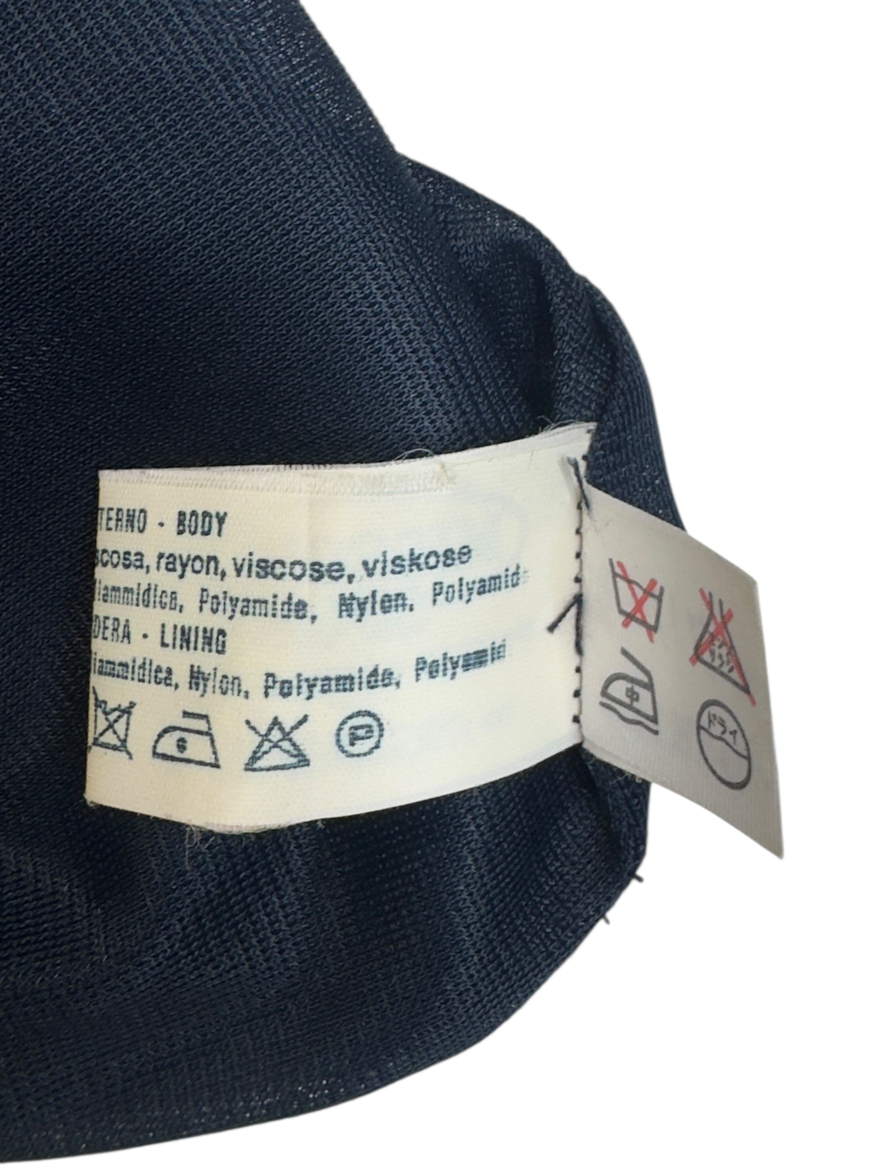 Vintage 2000s Missoni Sport High Waisted Navy Blue Abstract Patterned Circle A-Line Mini Skirt | Size S