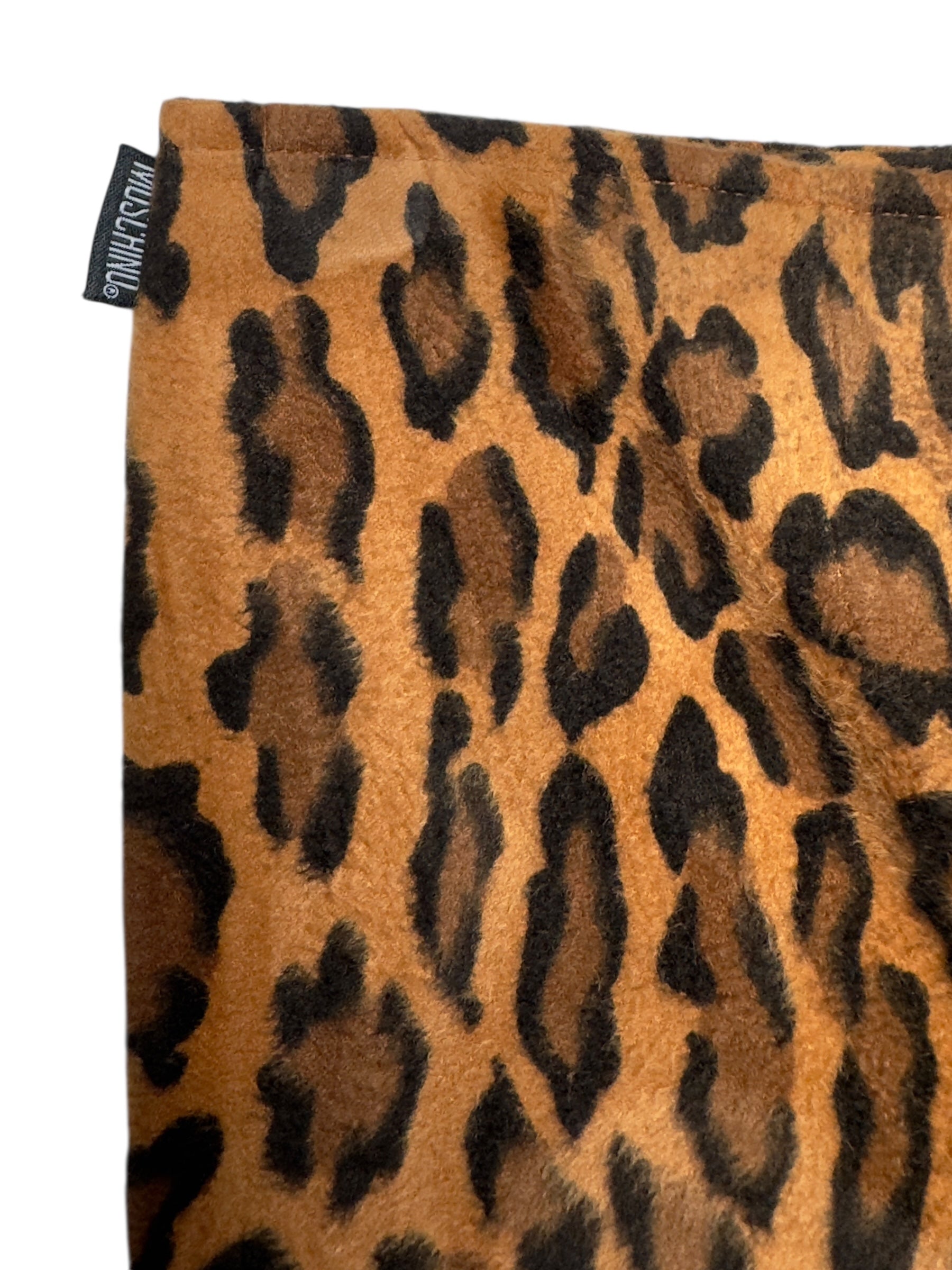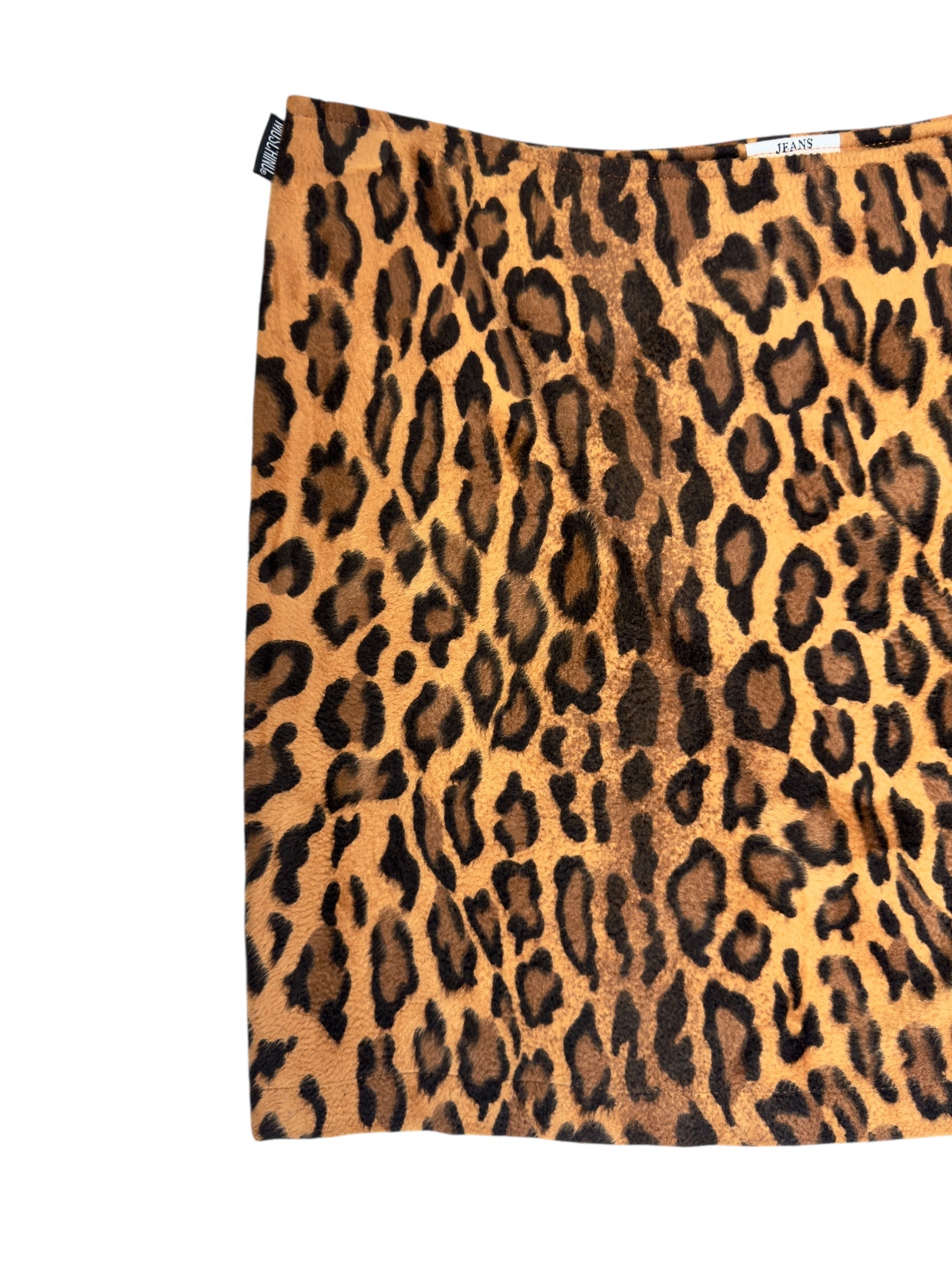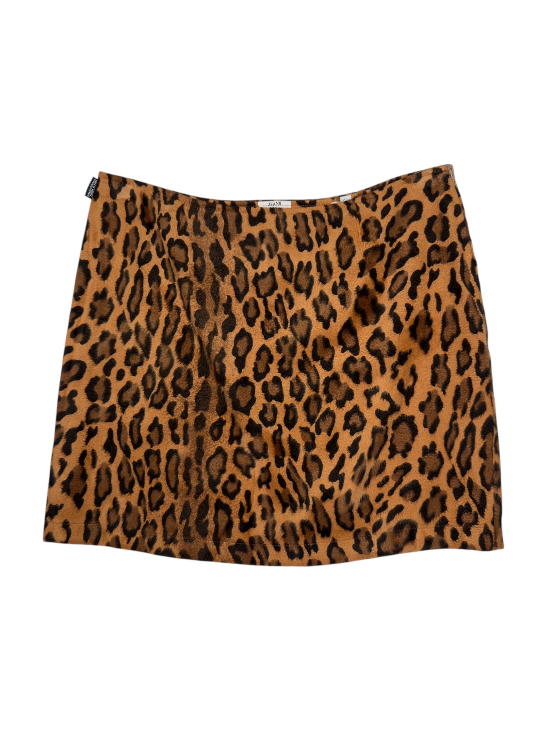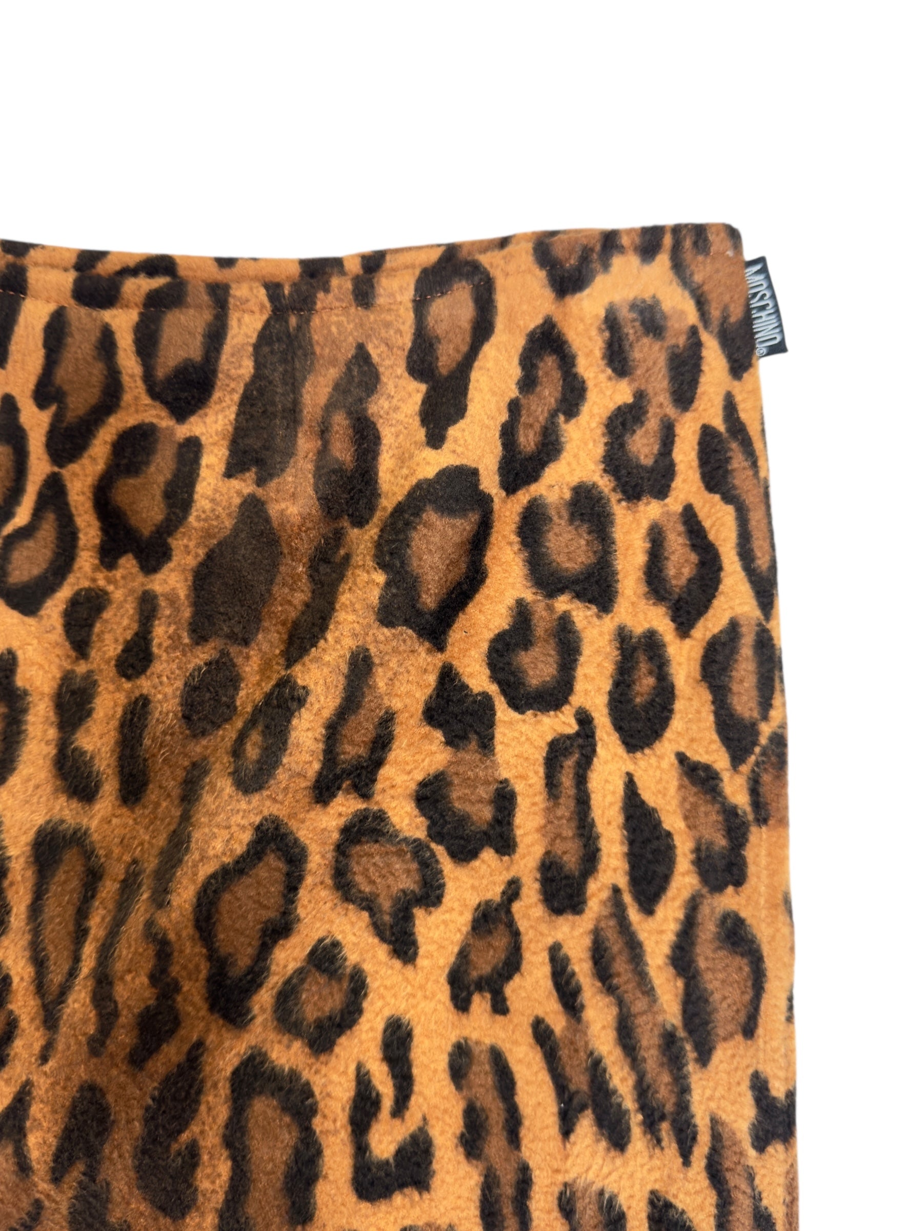Vintage 2000s Moschino Jeans Low Rise Leopard Print Fuzzy Velour Mini Skirt | 28 Inch Waist