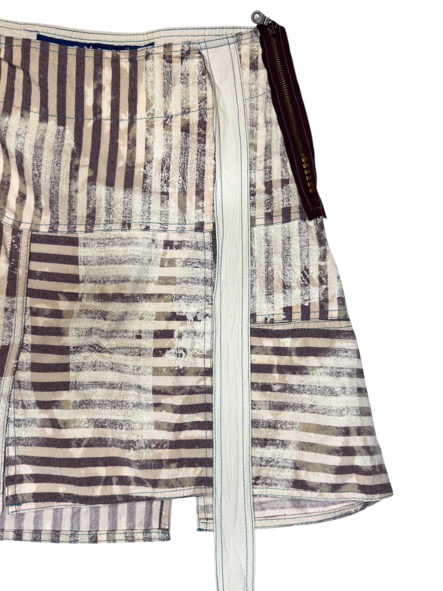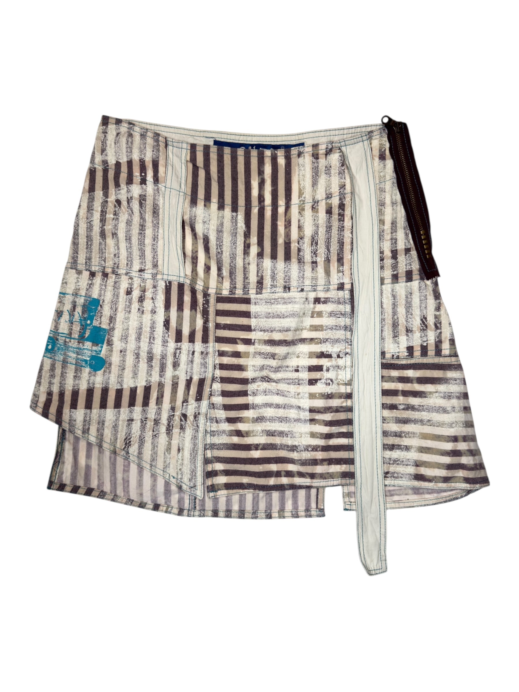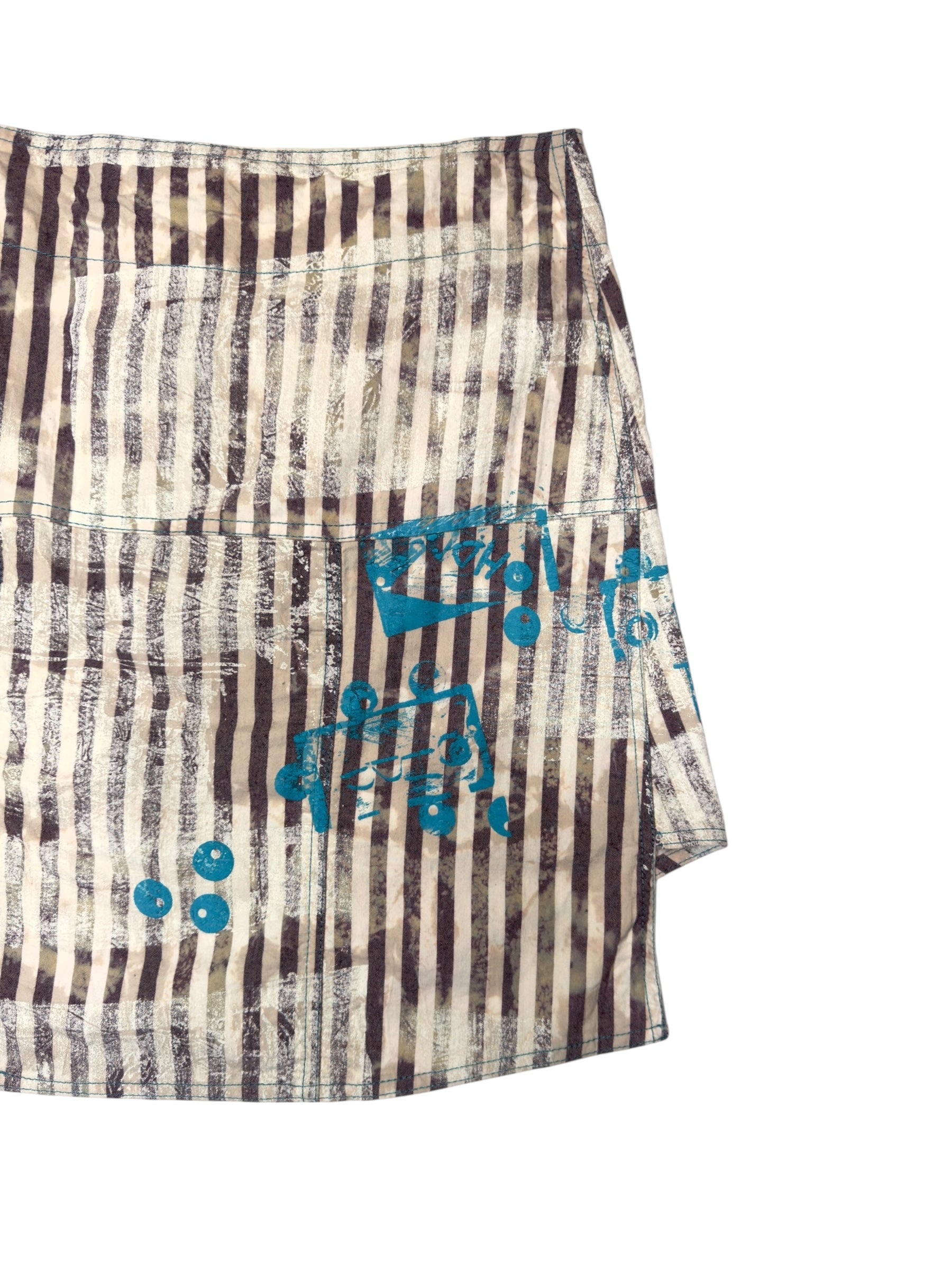Vintage 2000s OHDD by Save the Queen Low Rise Abstract Striped Skirt with Blue Screenprint Detail | 31 Inch Waist