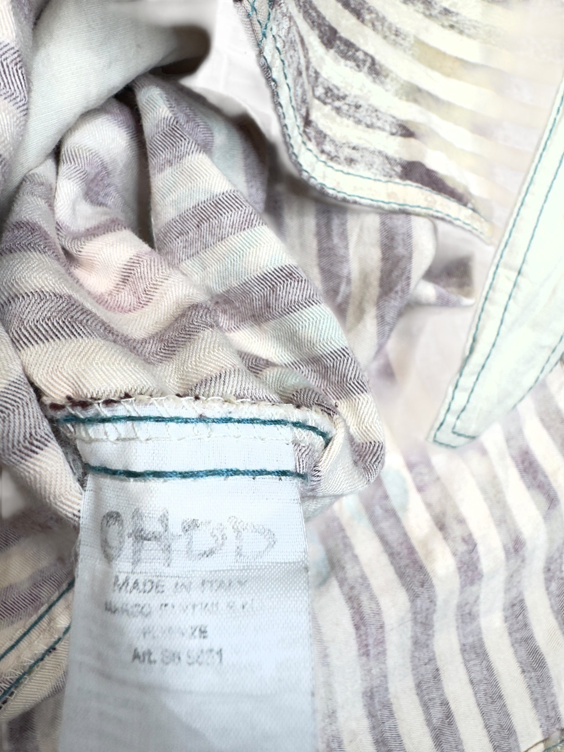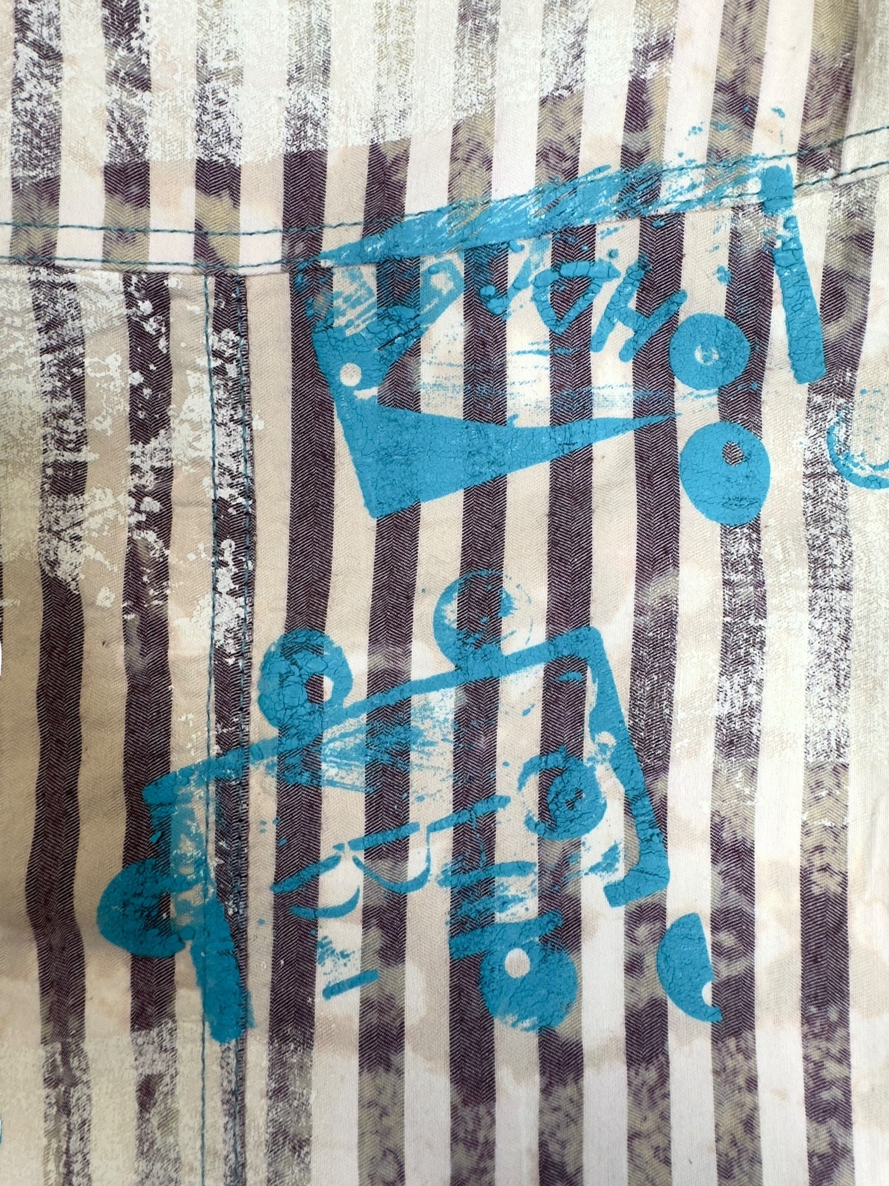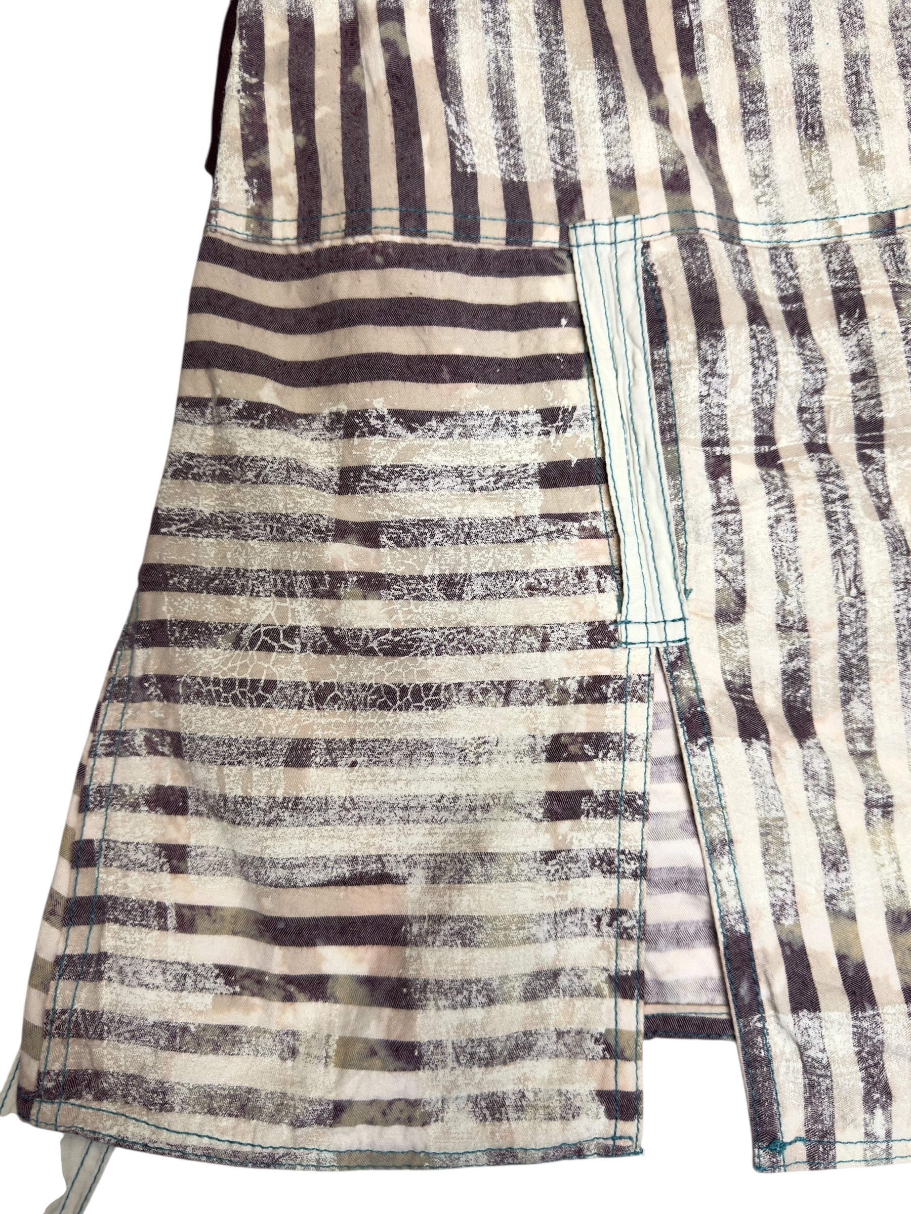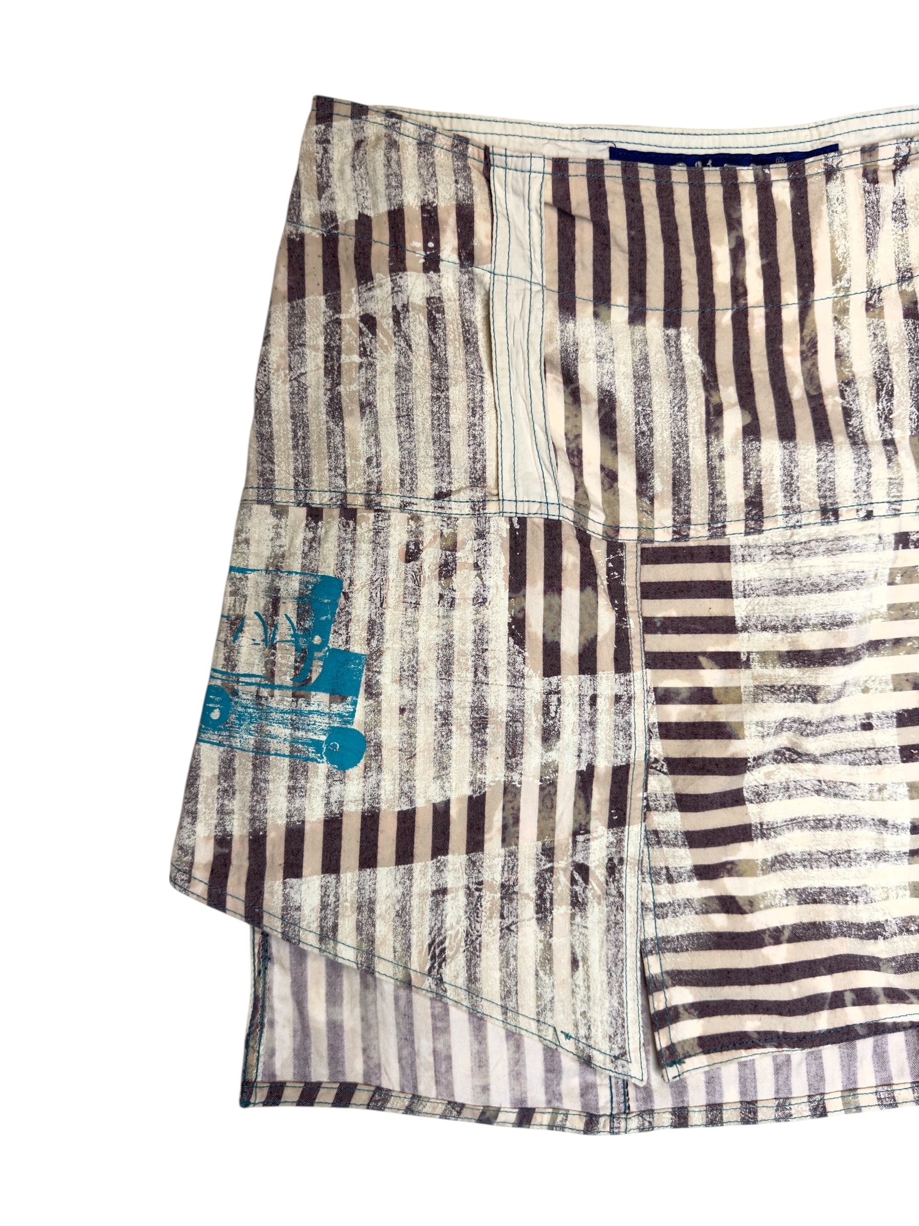 Vintage 2000s OHDD by Save the Queen Low Rise Abstract Striped Skirt with Blue Screenprint Detail | 31 Inch Waist